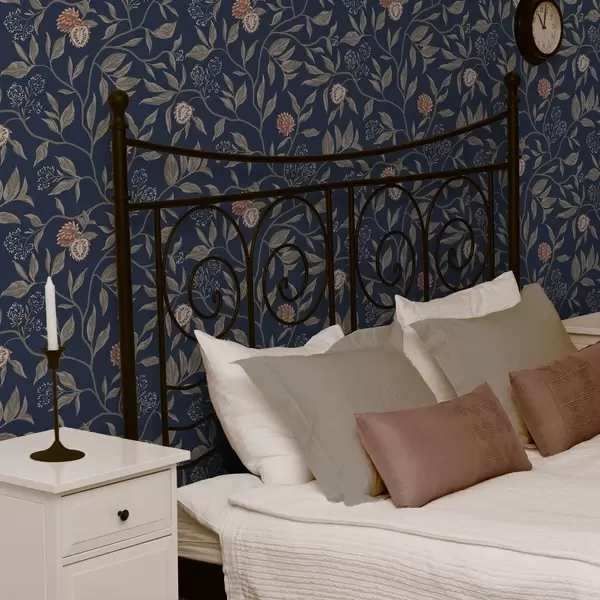Carta da parati Giardino blu con rami, frutti e piccoli fiori Nr. a00959