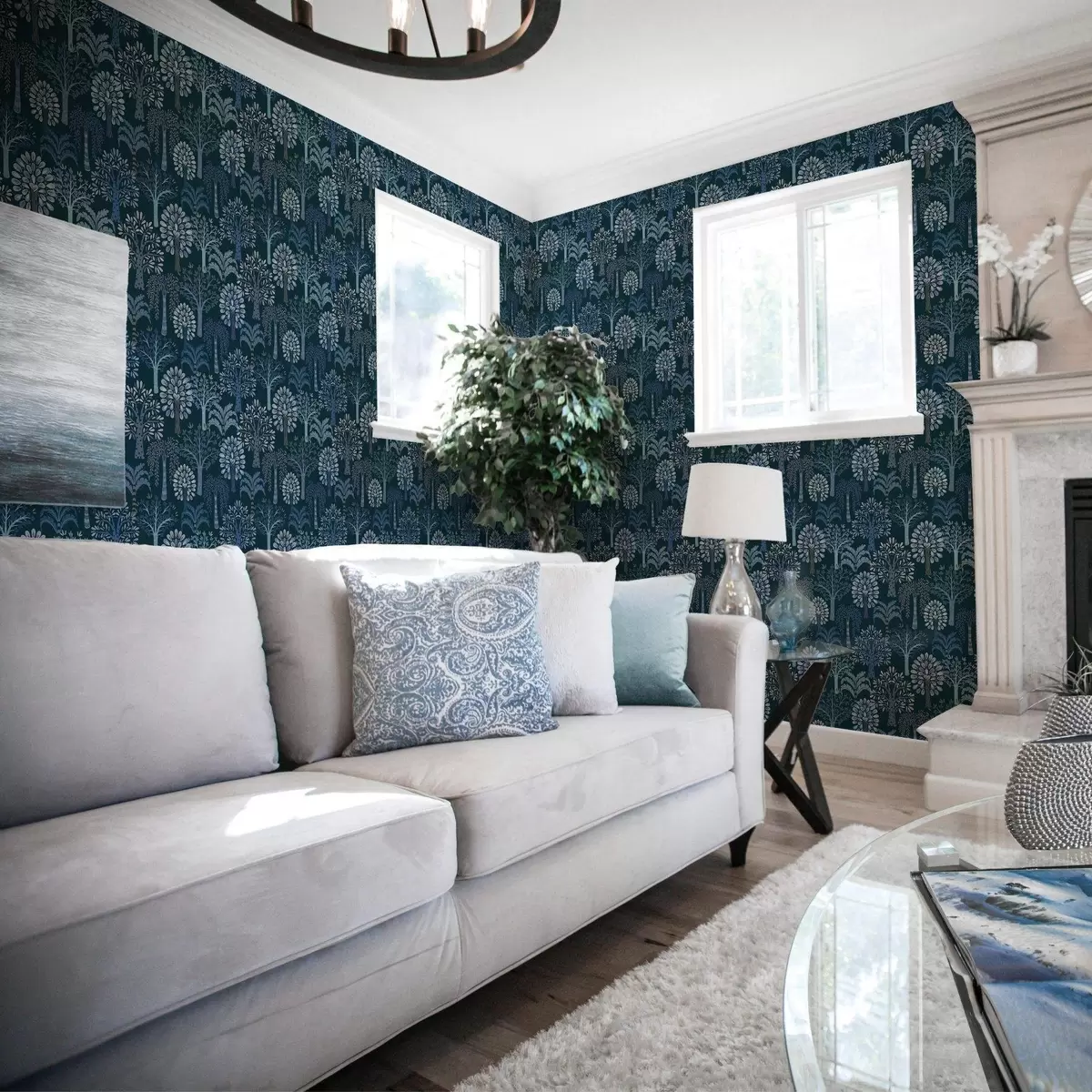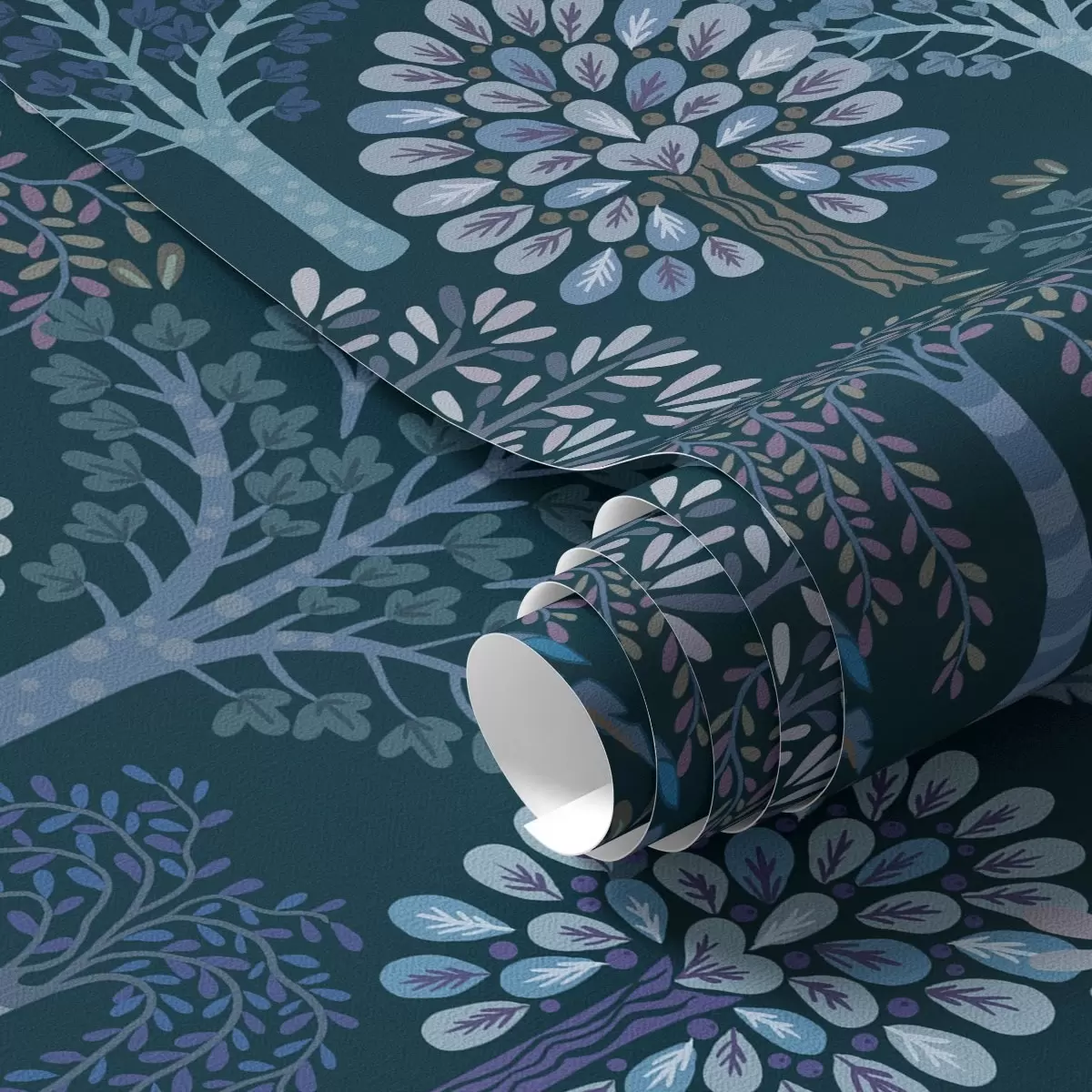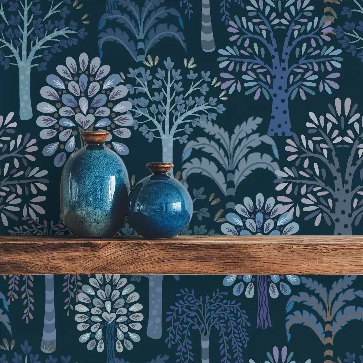 Carta da parati Foresta notturna con alberi decorativi nei toni del blu Nr. a00960v2
