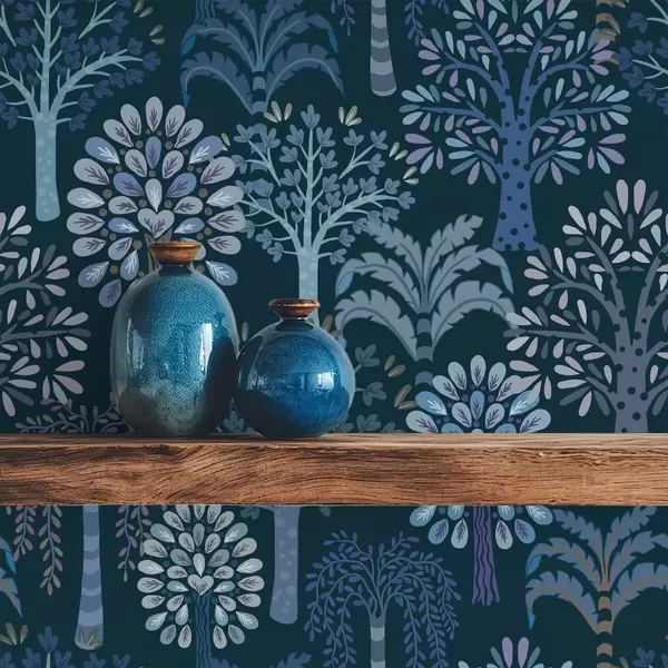 Carta da parati Foresta notturna con alberi decorativi nei toni del blu Nr. a00960v2