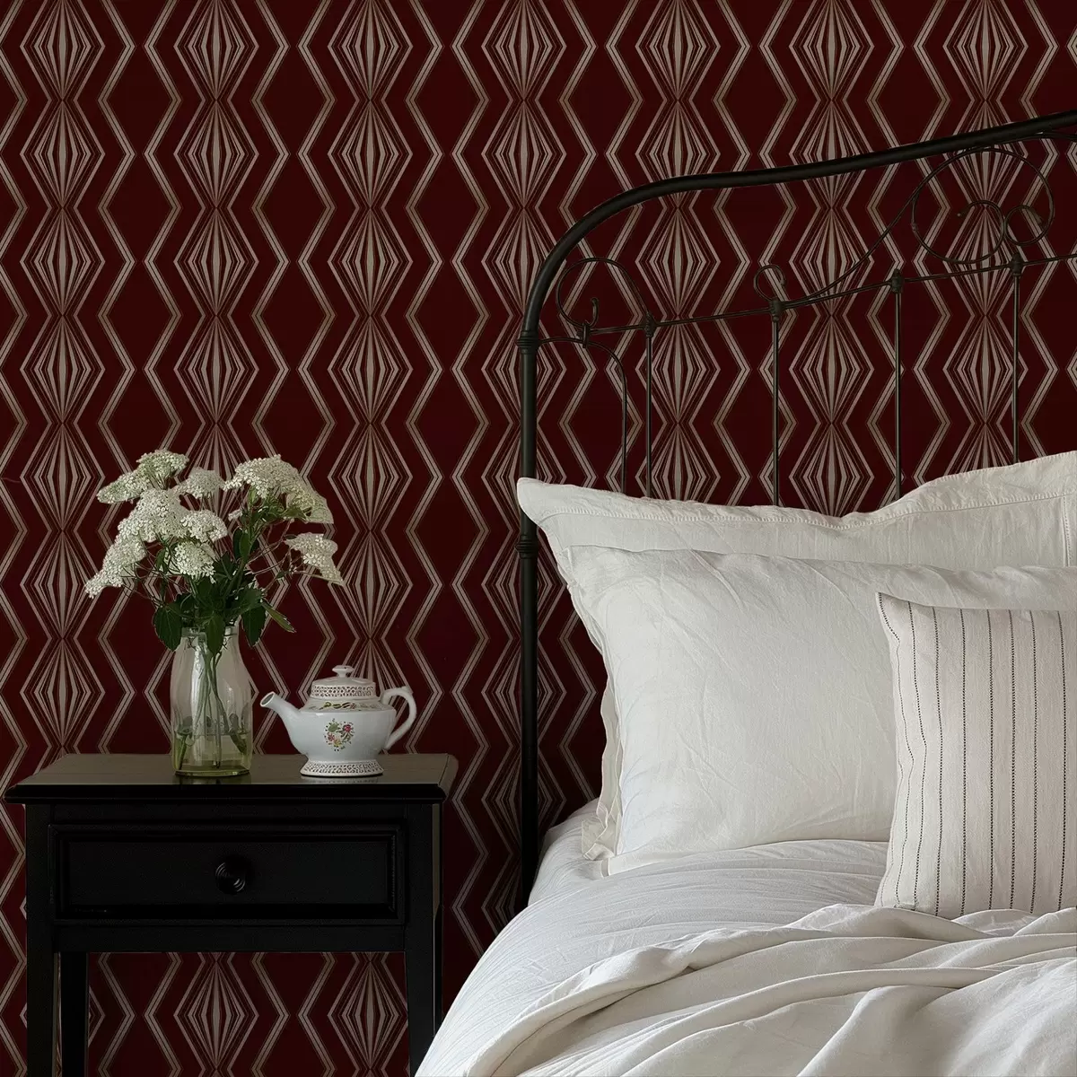 Carta da parati Sfondo bordeaux con rombi ritmici e linee a zigzag Nr. a00974