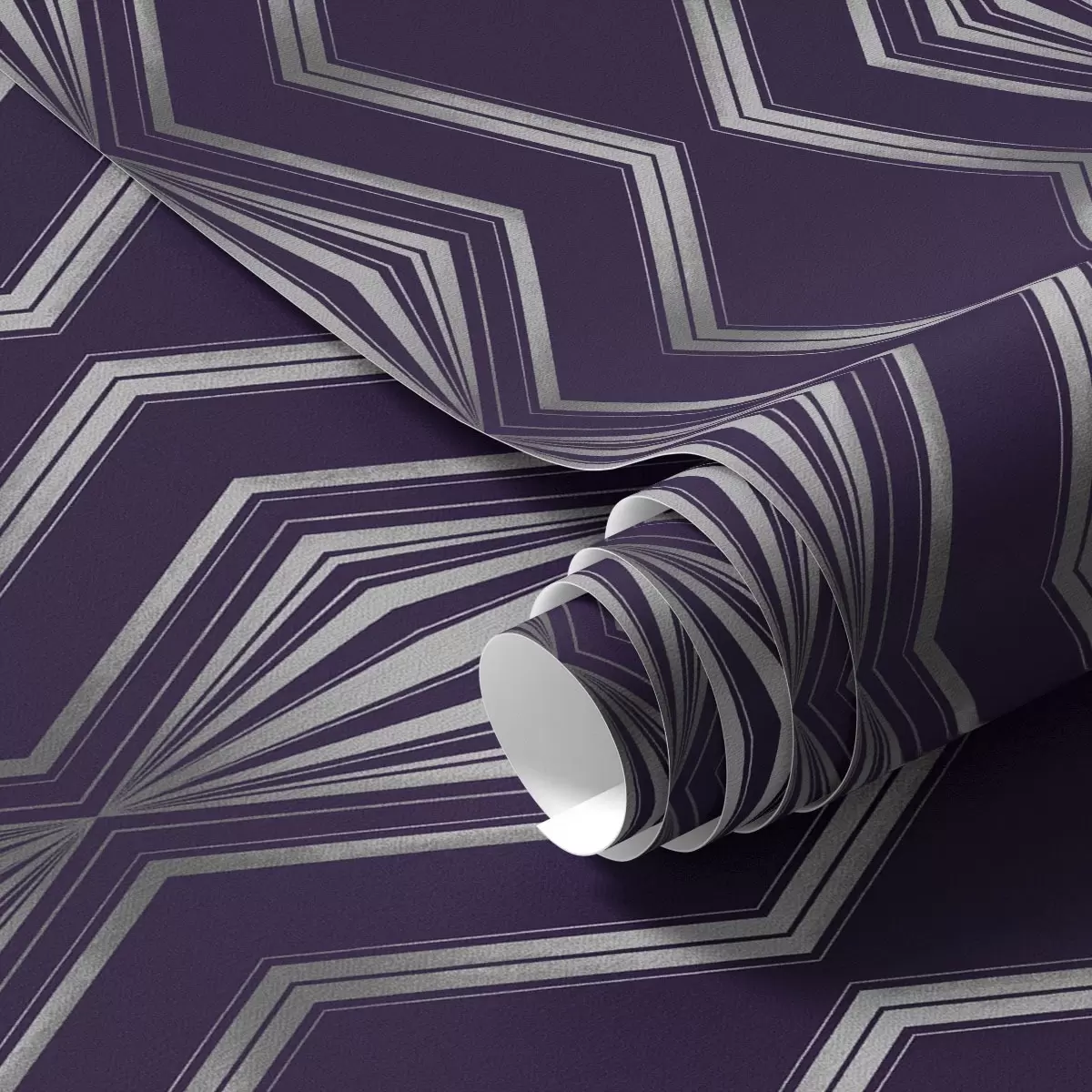 Carta da parati Sfondo viola intenso con rombi e linee grigie a zigzag Nr. a00974v1