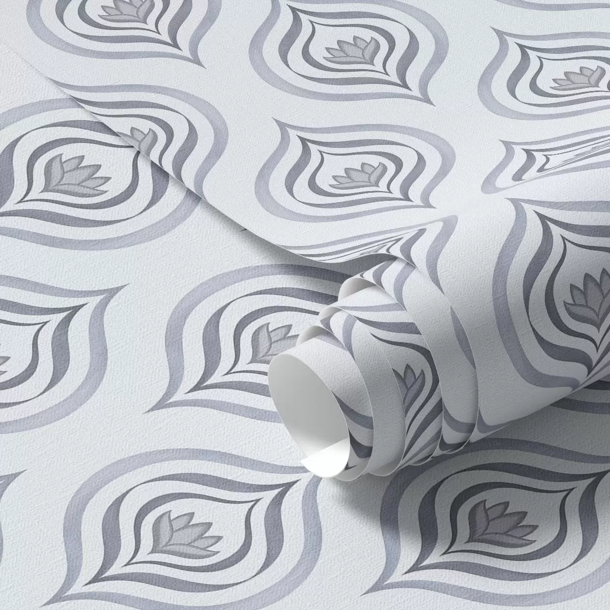Carta da parati Motivo a goccia con un fiore nei toni del grigio-blu Nr. a00977v3