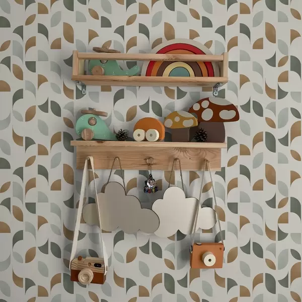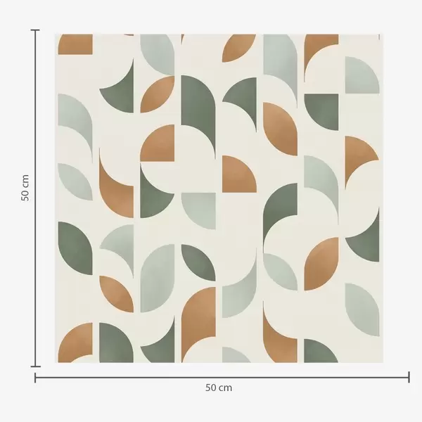 Carta da parati Semicerchi astratti e foglie in verde e terracotta Nr. a00985