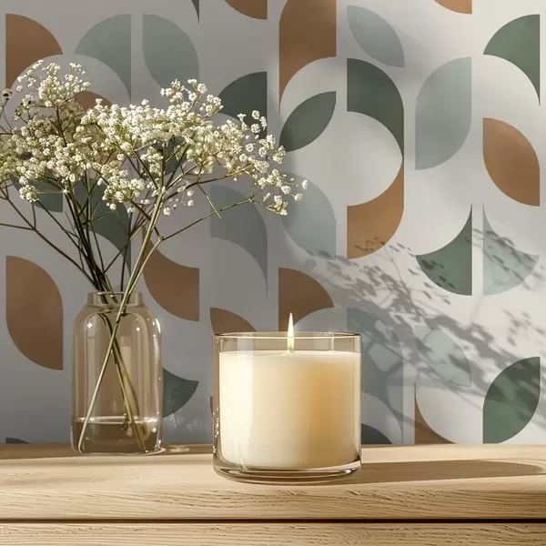 Carta da parati Colonne verticali di semicerchi e foglie, terracotta verde Nr. a00986