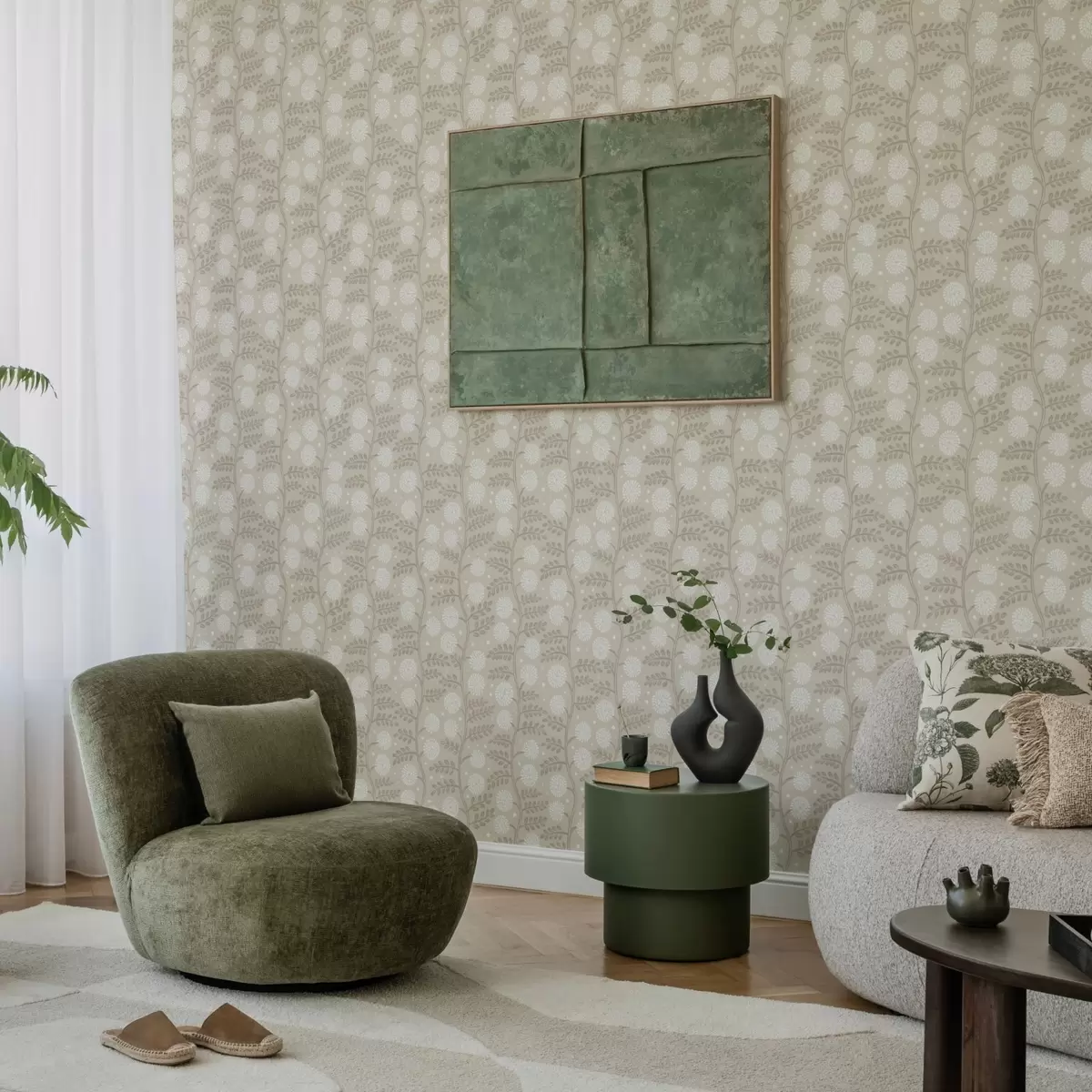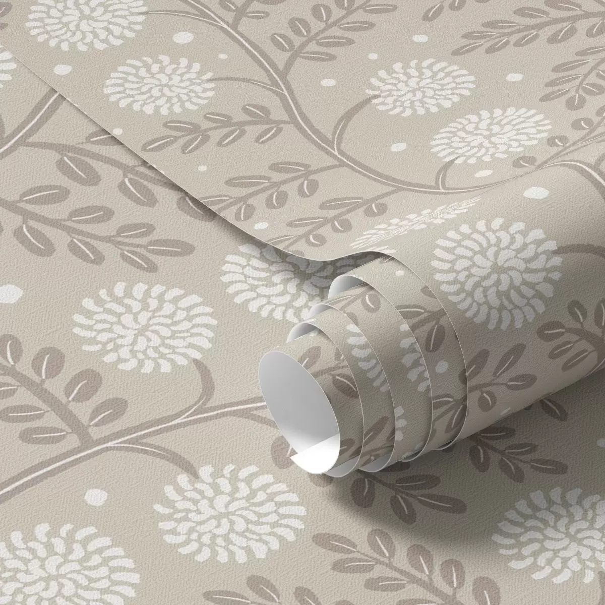 Carta da parati Steli beige con fiori bianchi soffici e morbidi puntini Nr. a00997