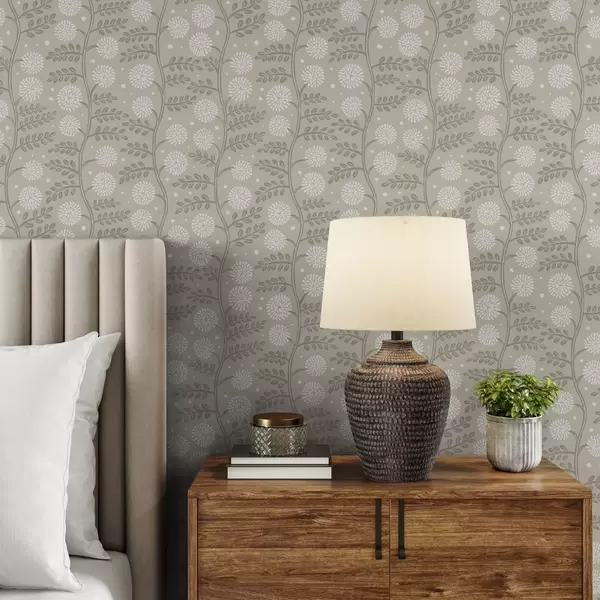 Carta da parati Steli beige con fiori bianchi soffici e morbidi puntini Nr. a00997
