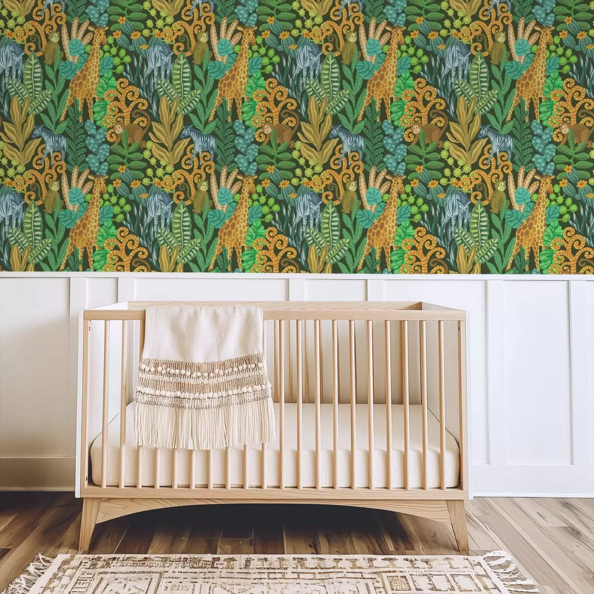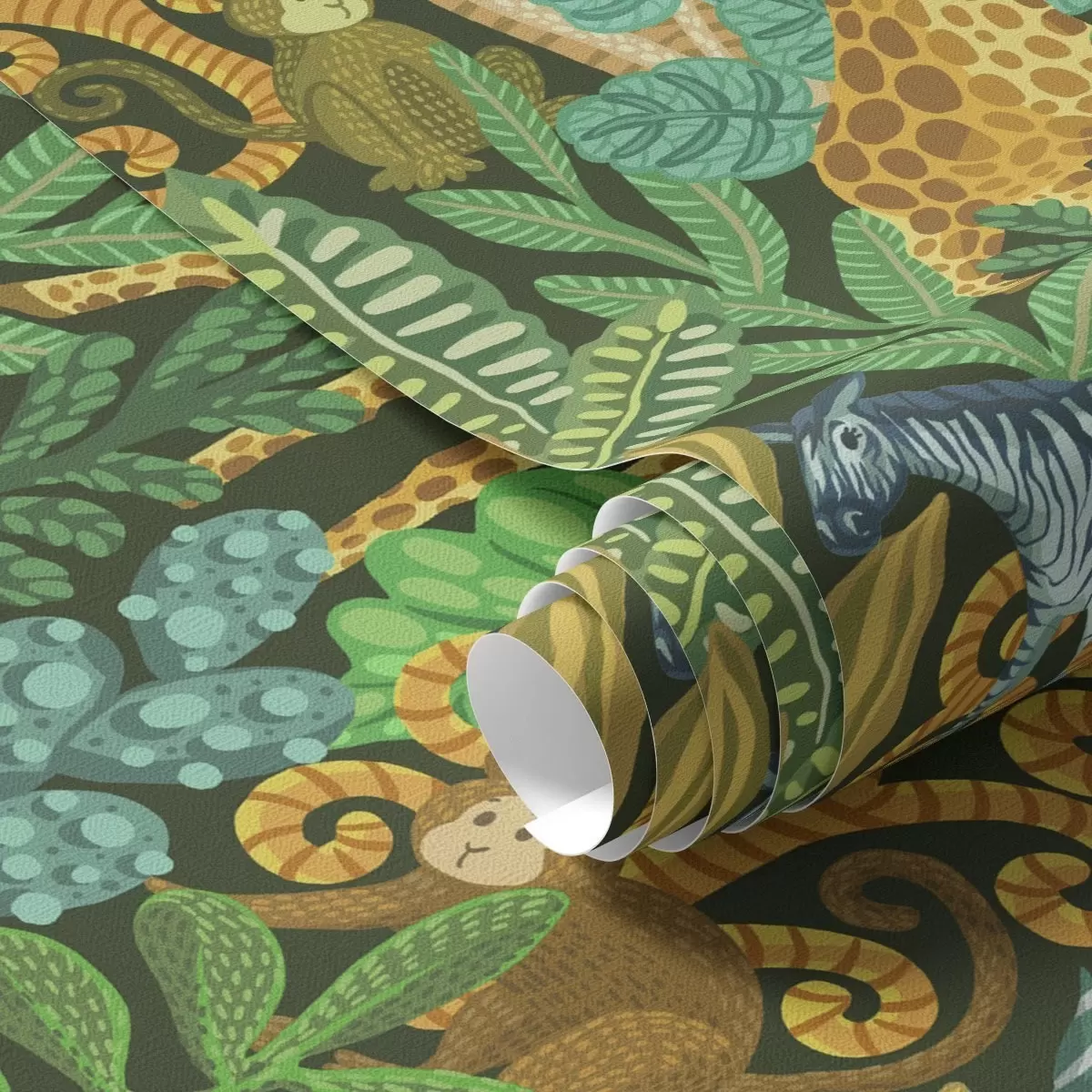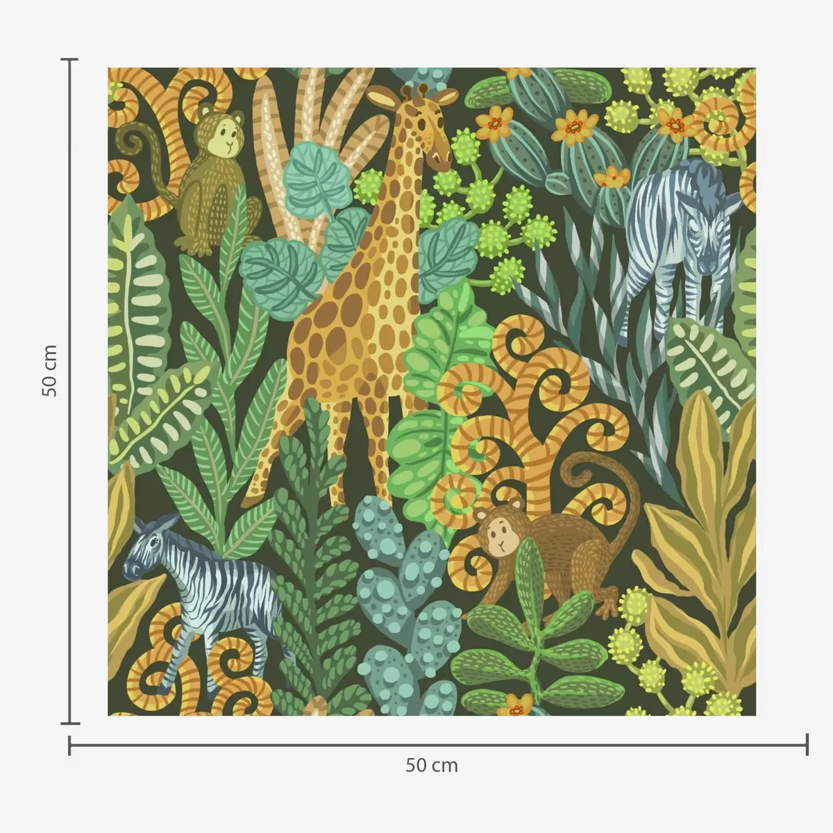 Carta da parati Fitta giungla con animali su sfondo verde scuro Nr. a01000v2