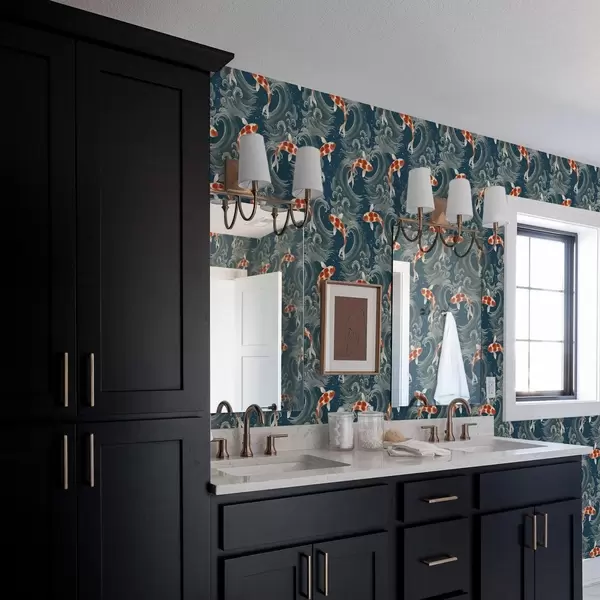 Carta da parati Carpe koi che nuotano tra le onde spettacolari dell'oceano Nr. a01019