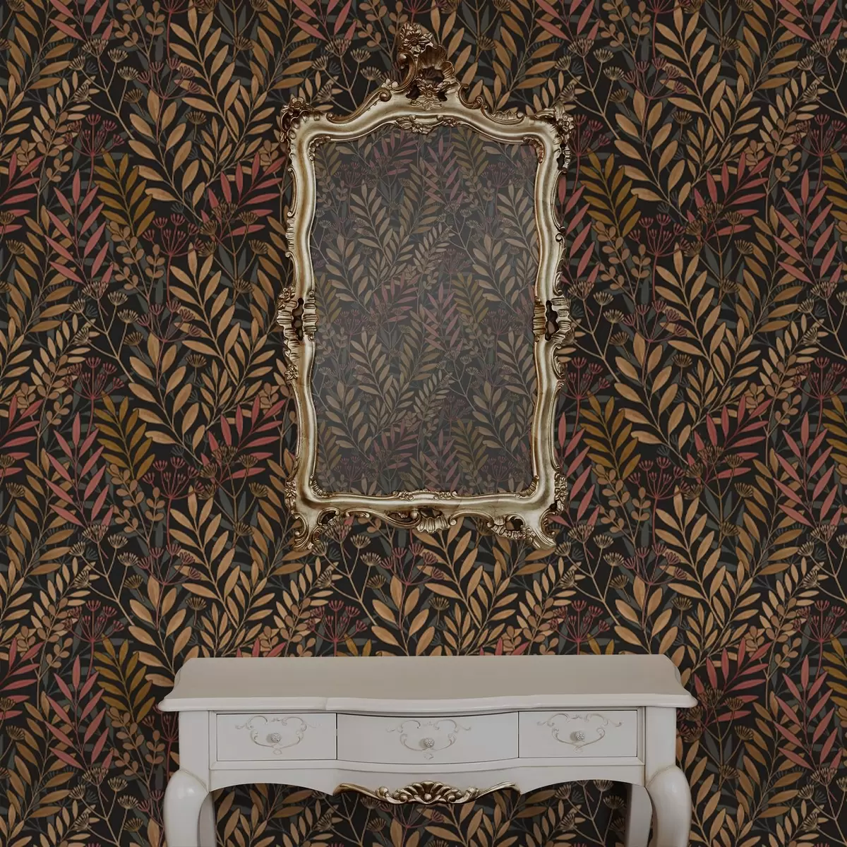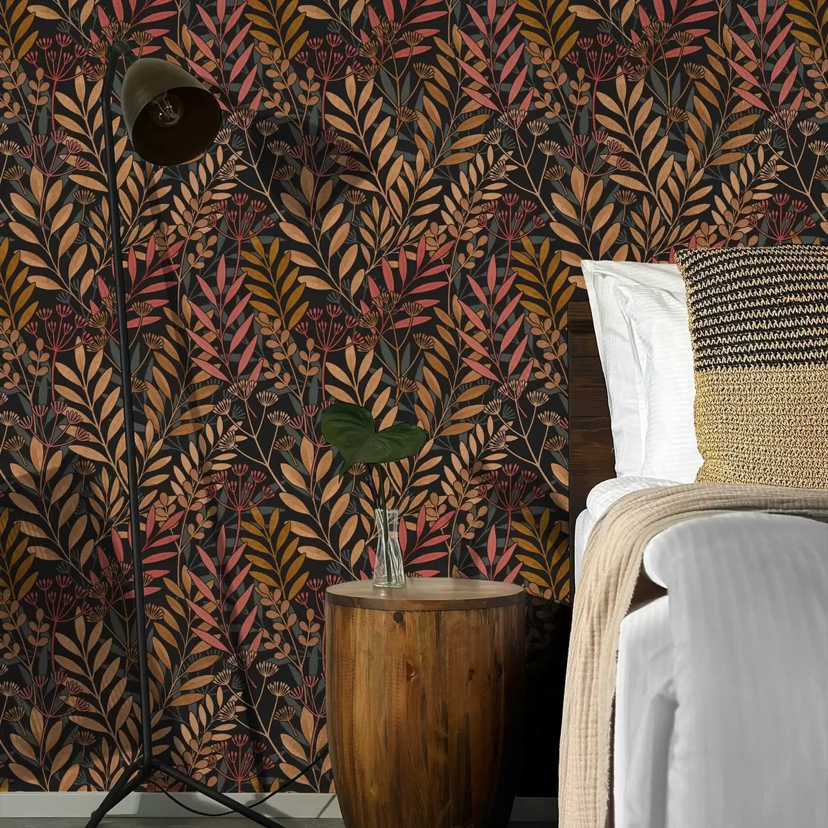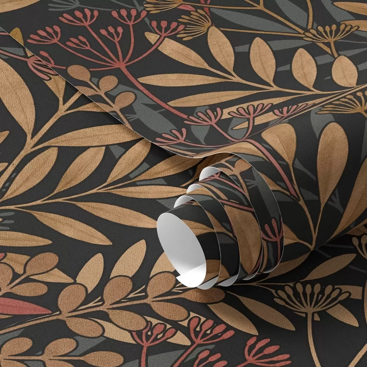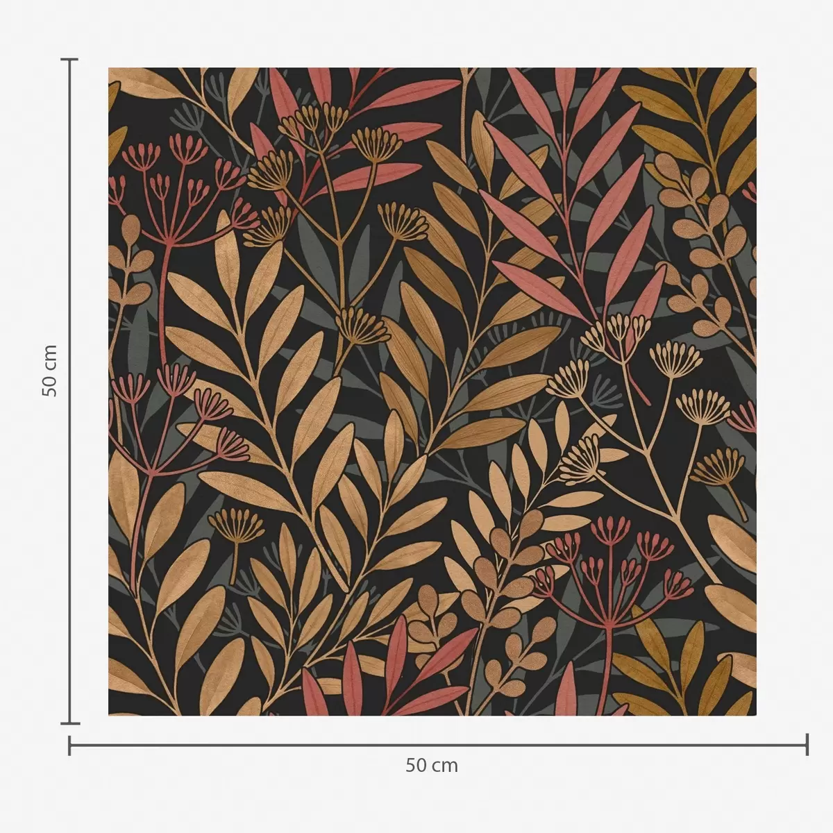 Carta da parati Prato scuro con foglie stilizzate e baccelli Nr. a01020