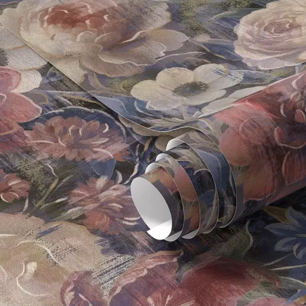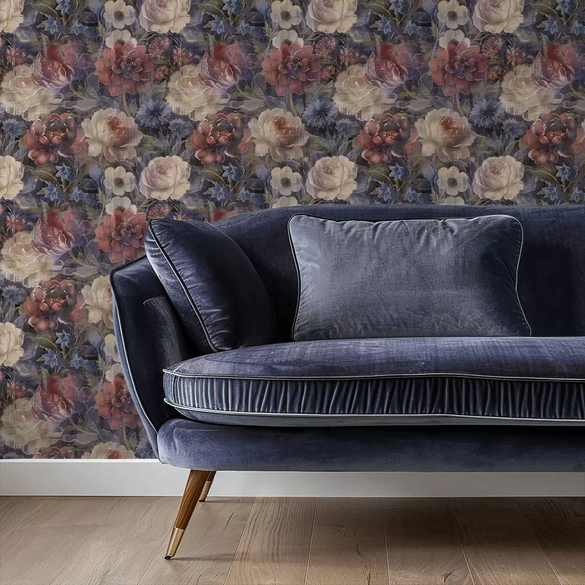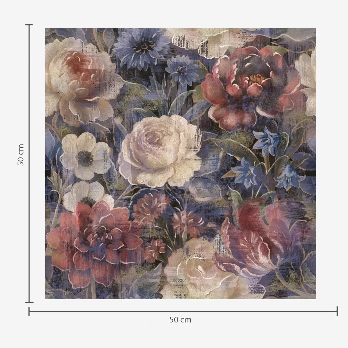 Carta da parati Bouquet pittorico di grandi fiori su sfondo indaco intenso Nr. a01021