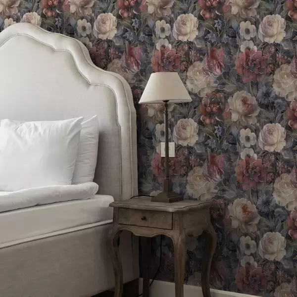 Carta da parati Bouquet pittorico di grandi fiori su sfondo indaco intenso a01021