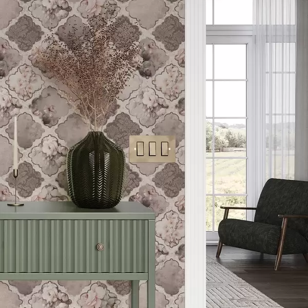 Carta da parati Romantico patchwork di medaglioni floreali nei toni polverosi Nr. a01027