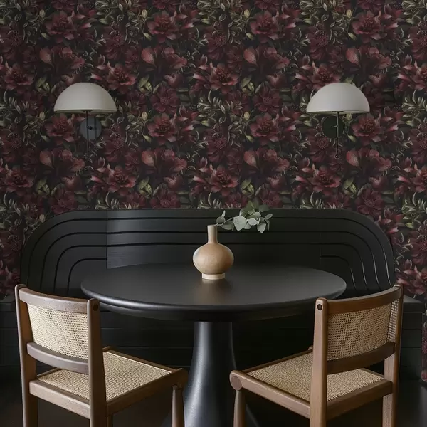 Carta da parati Ricchi fiori bordeaux su sfondo scuro Nr. a01032