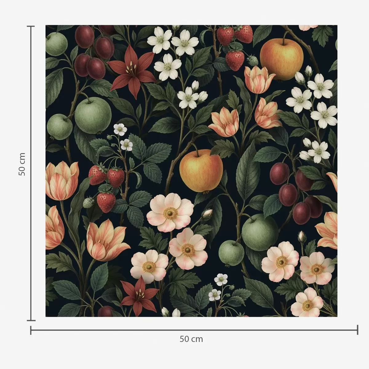 Carta da parati Giardino buio con fiori, mele mature e bacche Nr. a01034