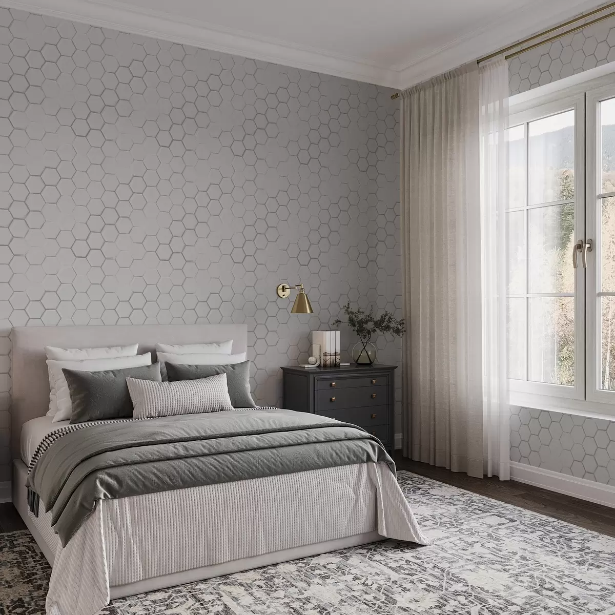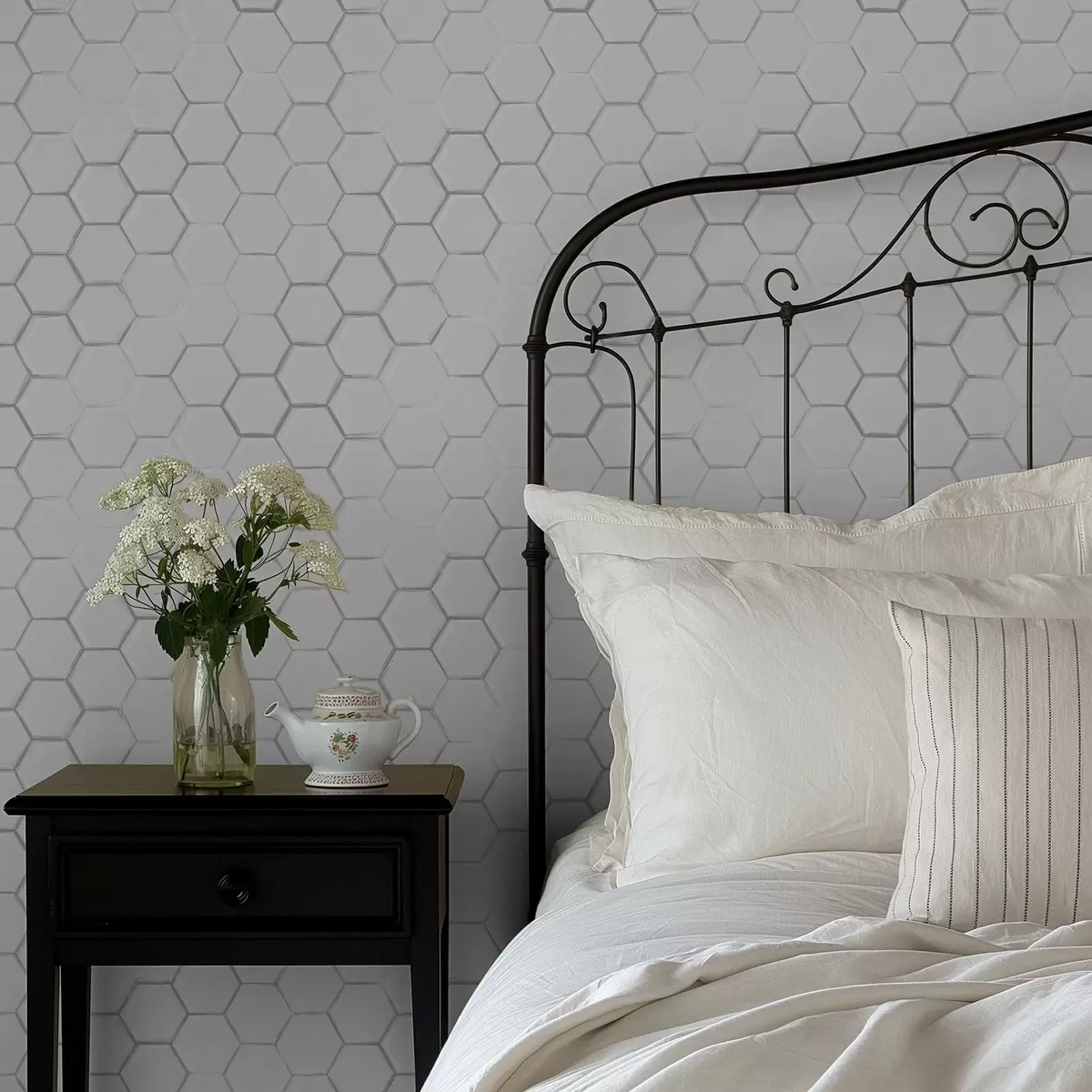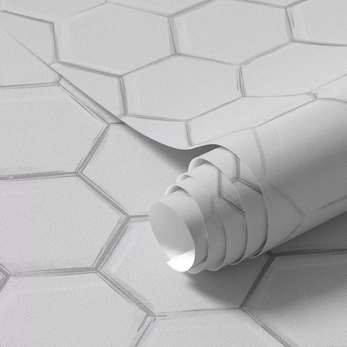 Carta da parati Esagoni tridimensionali bianchi su sfondo liscio Nr. a01059