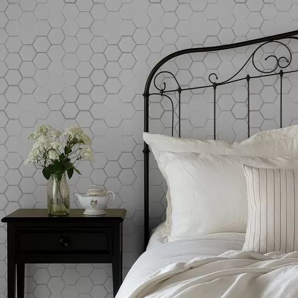 Carta da parati Esagoni tridimensionali bianchi su sfondo liscio Nr. a01059