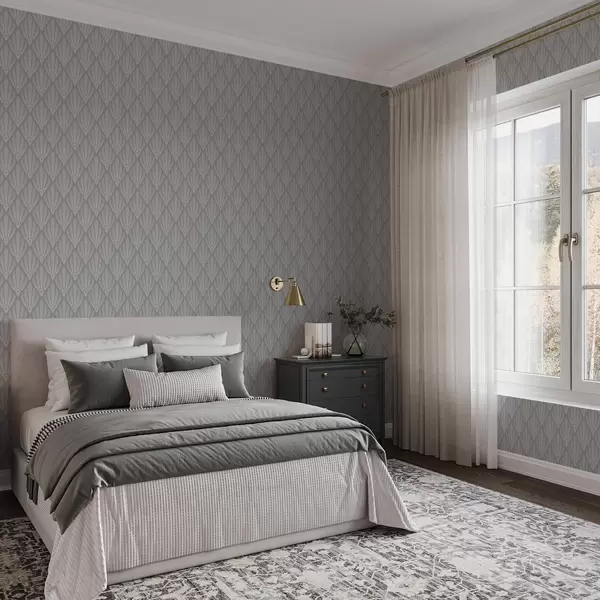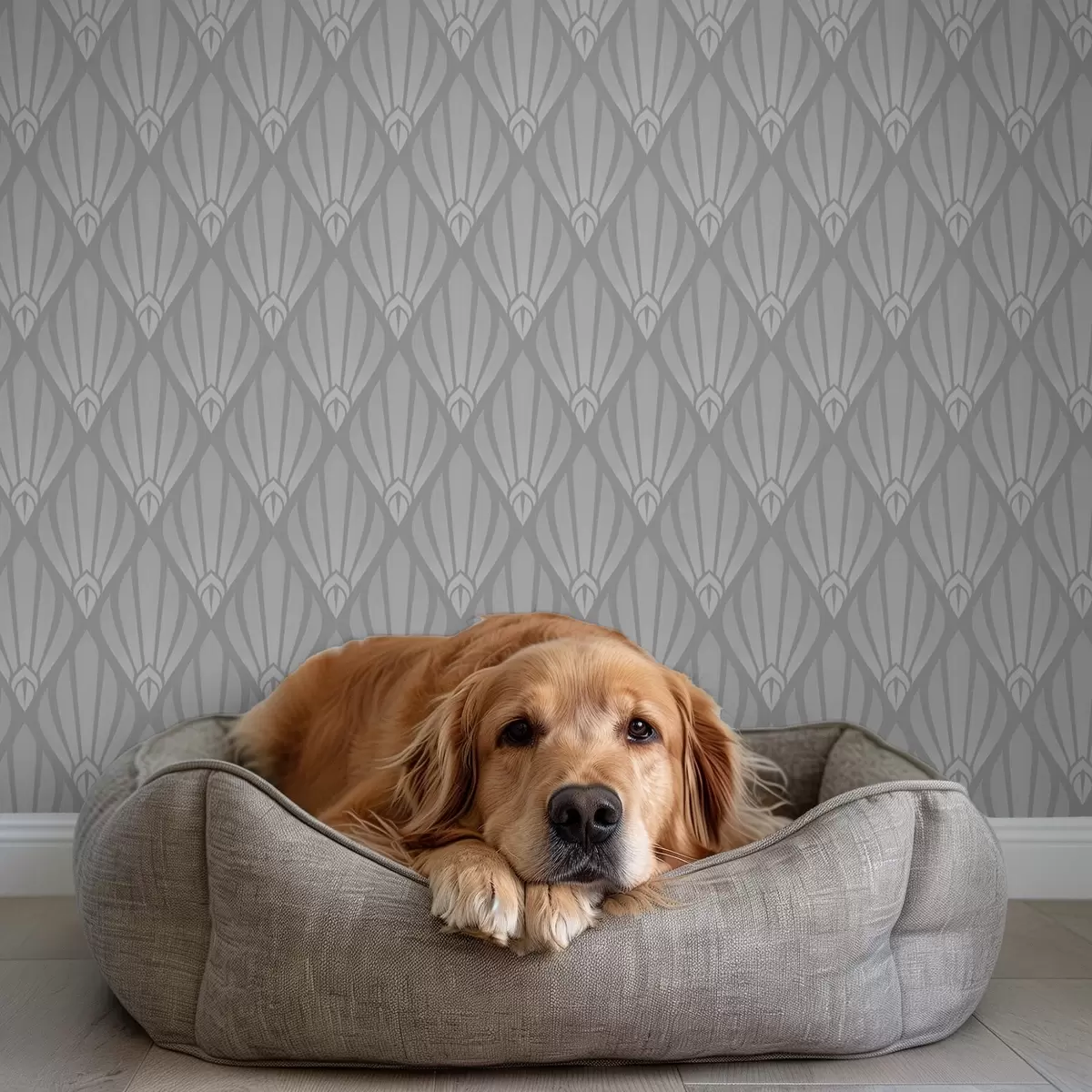 Carta da parati Art Déco grigio con forme a ventaglio Nr. a01064