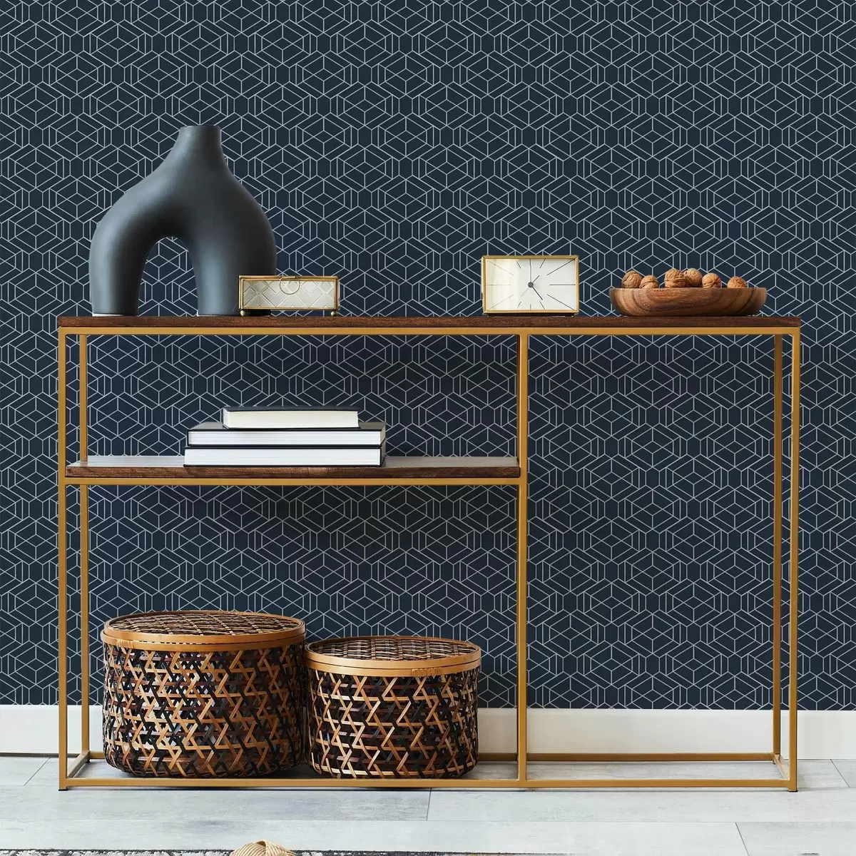 Carta da parati Rete geometrica blu scuro di cubi a01066v1