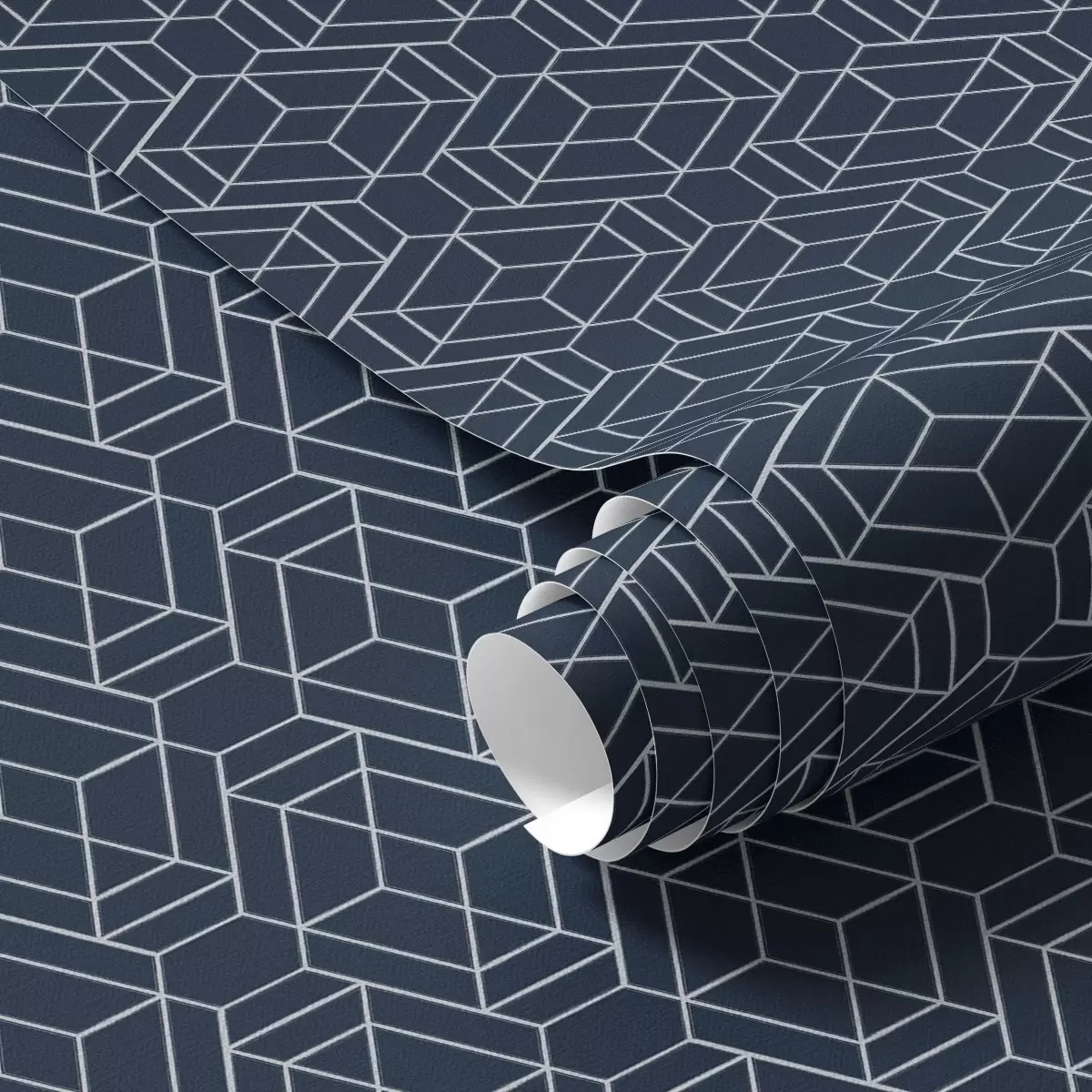 Carta da parati Rete geometrica blu scuro di cubi Nr. a01066v1