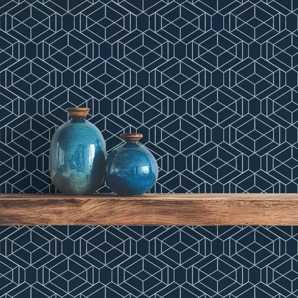 Carta da parati Rete geometrica blu scuro di cubi Nr. a01066v1