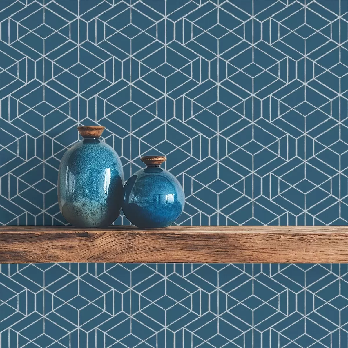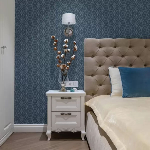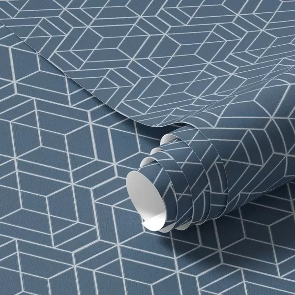 Carta da parati Sfondo blu con cubi lineari bianchi disposti a griglia Nr. a01067v1