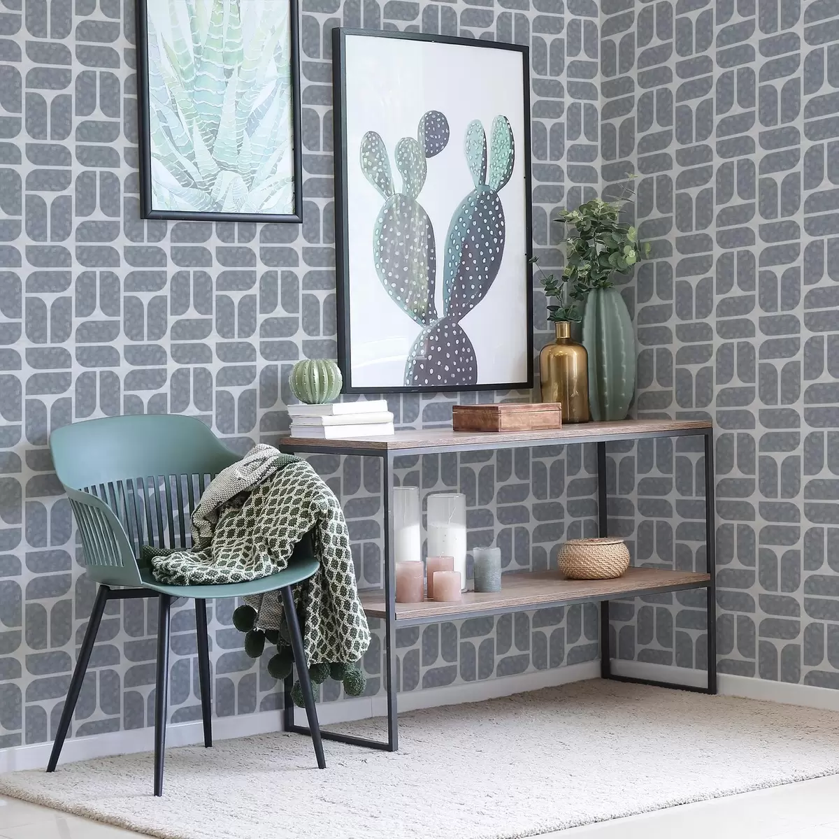 Carta da parati Mosaico grigio con forme alternate arrotondate e rettangolari Nr. a01069