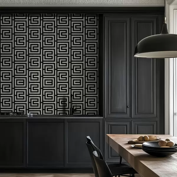 Carta da parati Motivo geometrico bianco e nero a labirinto Nr. a01073