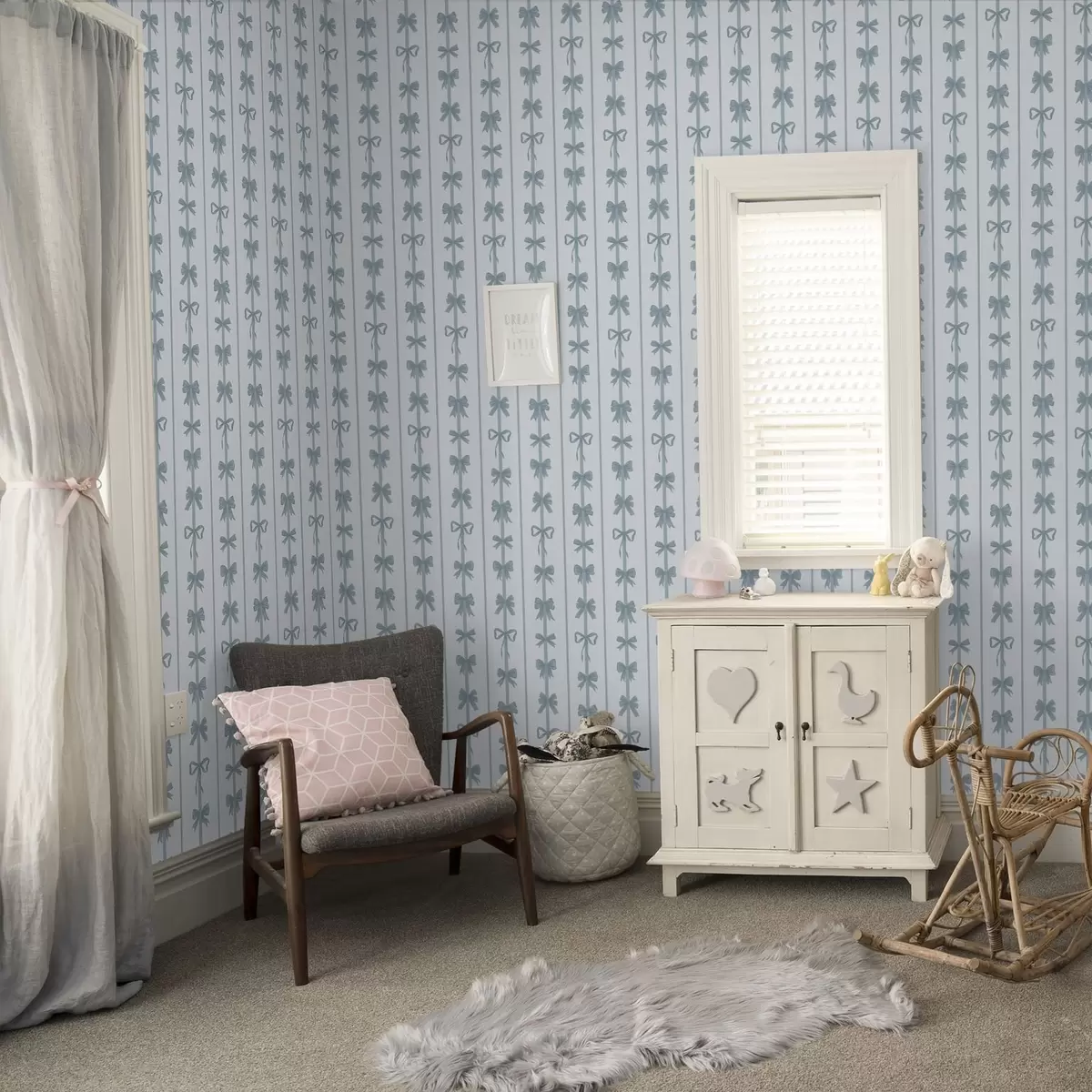 Carta da parati Fiocchi blu a righe su sfondo chiaro Nr. a01075v2