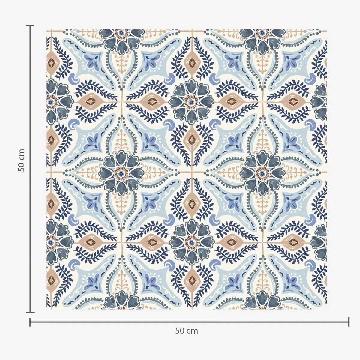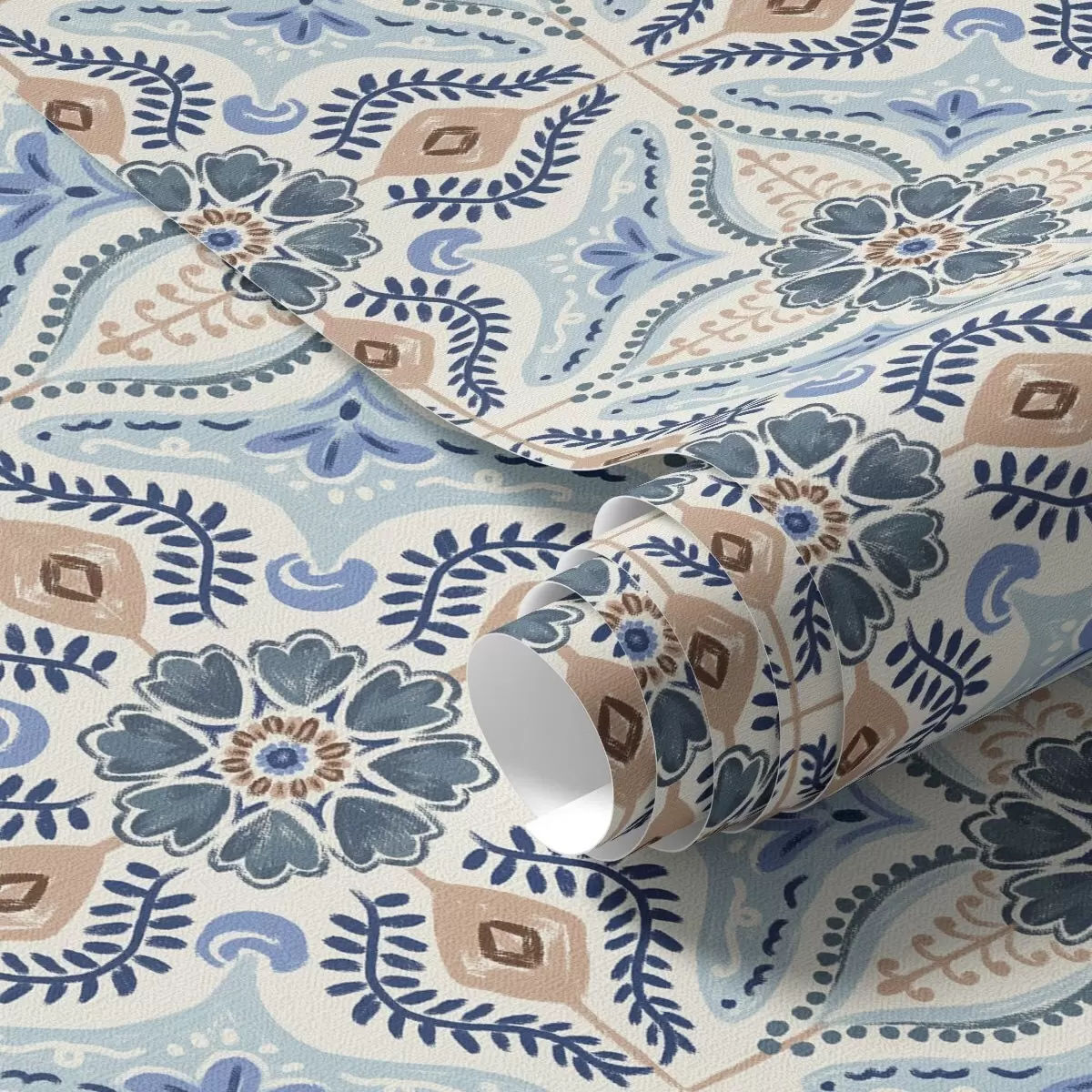 Carta da parati Ornamento in stile piastrella blu-beige dipinto ad acquerello Nr. a01085