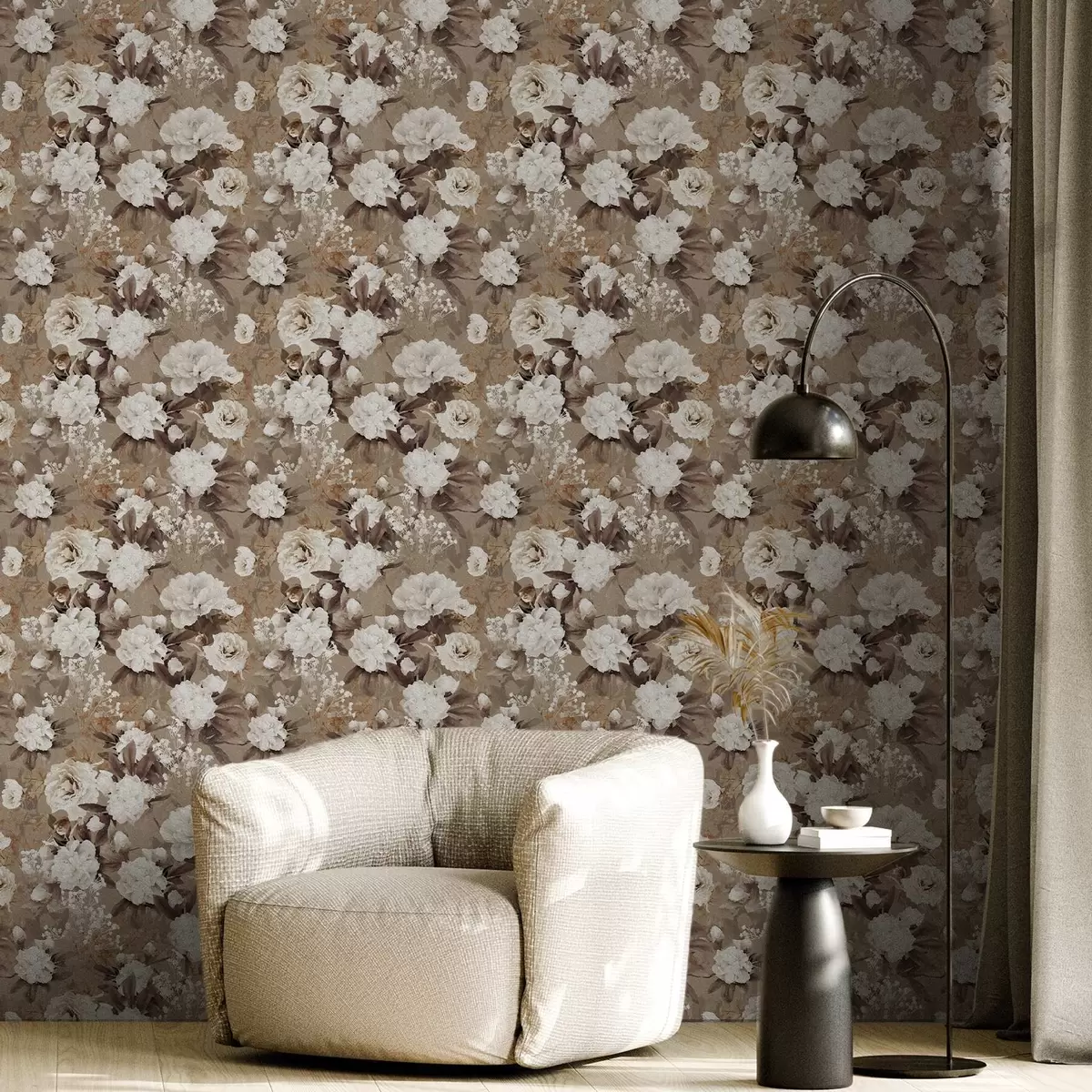 Carta da parati Calde peonie beige su uno sfondo strutturato Nr. a01087