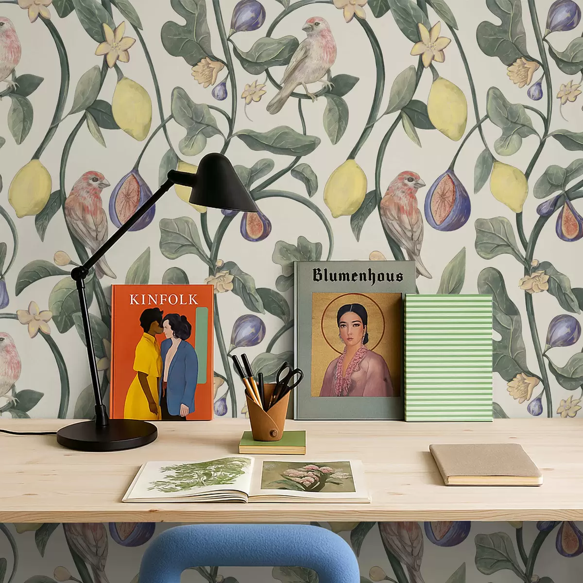 Carta da parati Uccelli tra foglie e frutti Nr. a01107