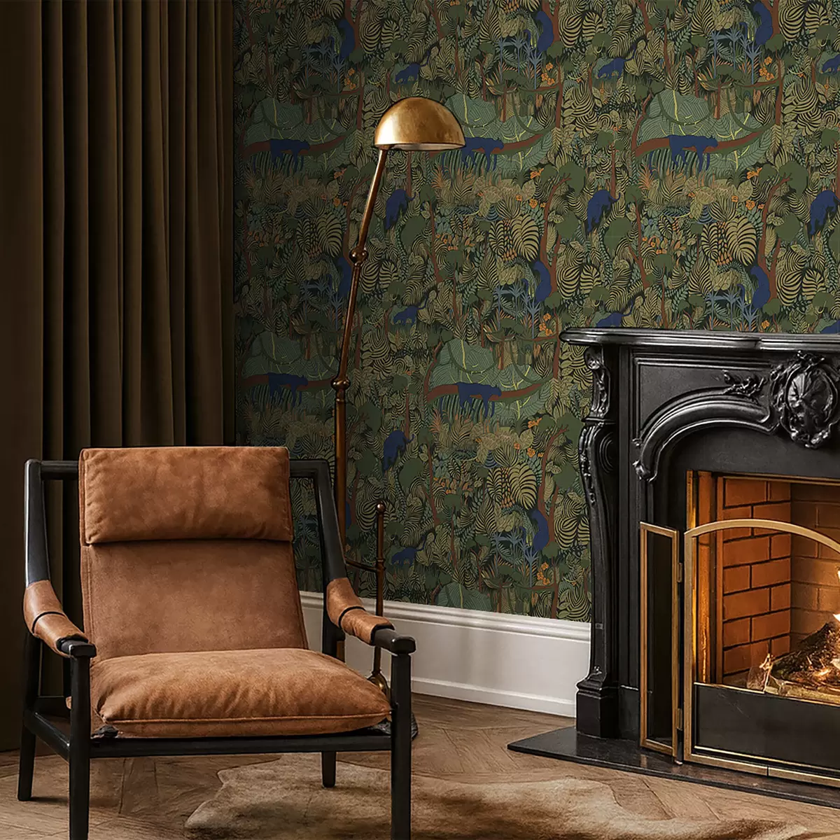 Carta da parati Scena di una foresta oscura con animali Nr. a01108v1