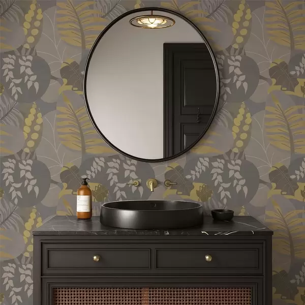 Carta da parati Foglie astratte nei toni del grigio e del giallo Nr. a01112