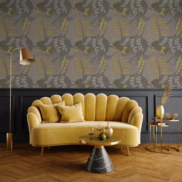 Carta da parati Foglie astratte nei toni del grigio e del giallo a01112