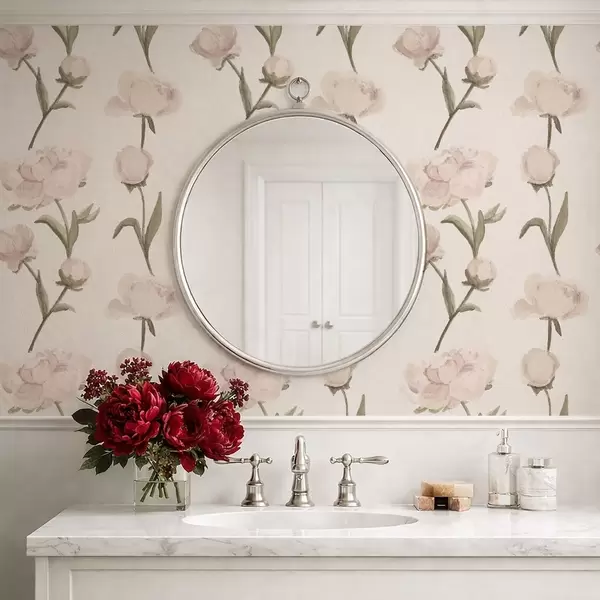 Carta da parati Peonie rosa tenue su sfondo chiaro a01114