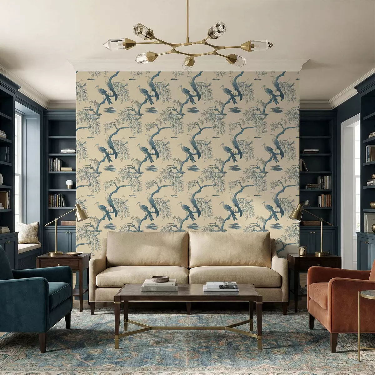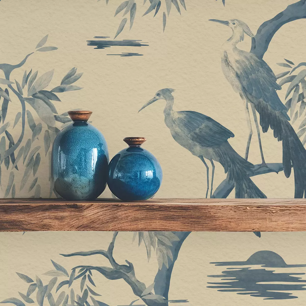 Carta da parati Uccelli su un ramo nei toni del blu Nr. a01116