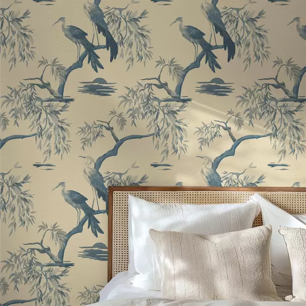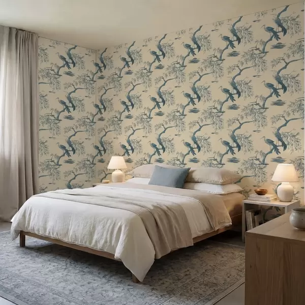 Carta da parati Uccelli su un ramo nei toni del blu a01116