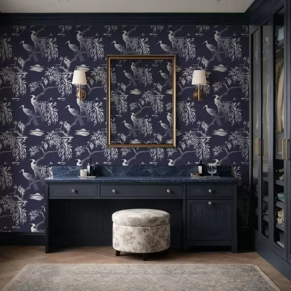 Carta da parati Uccelli su un ramo su sfondo blu scuro Nr. a01116v1