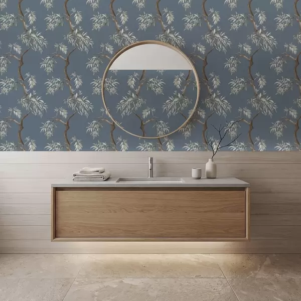 Carta da parati Ramo di albero con foglie su sfondo blu Nr. a01117
