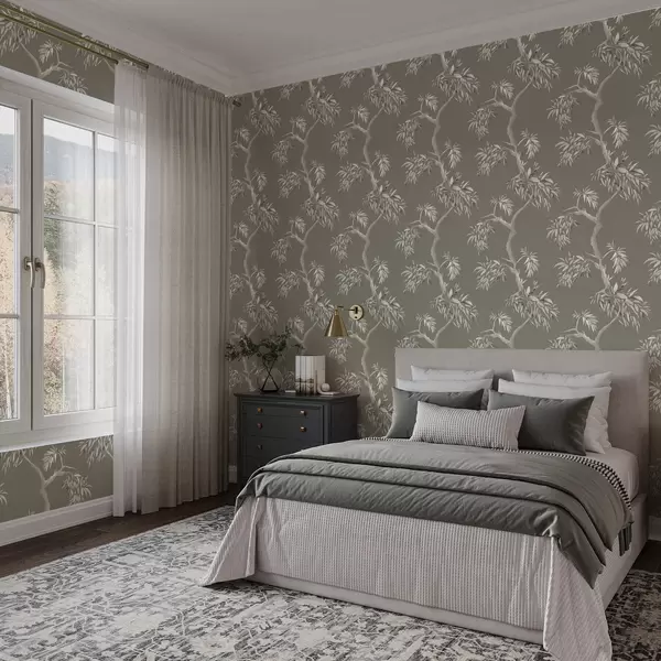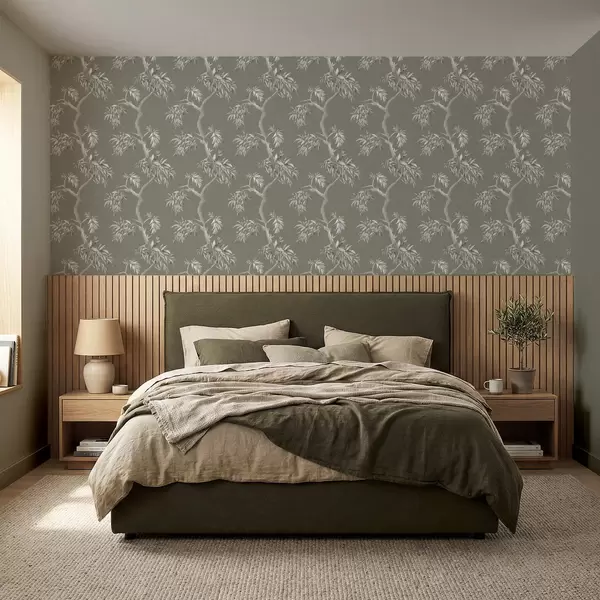 Carta da parati Ramo leggero con foglie su sfondo color oliva a01117v1