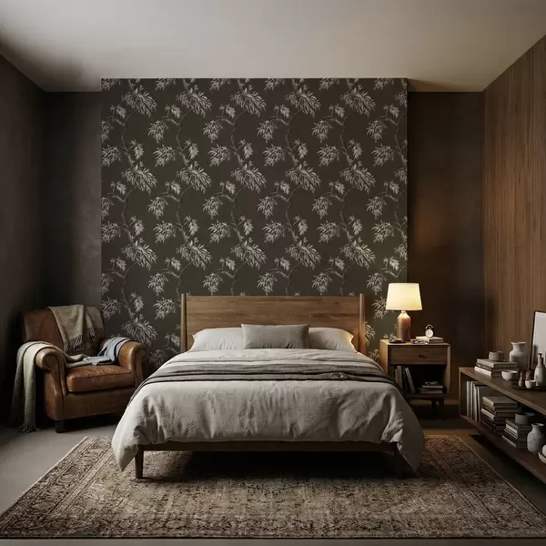 Carta da parati Ramo monocromatico con foglie su sfondo scuro Nr. a01117v2