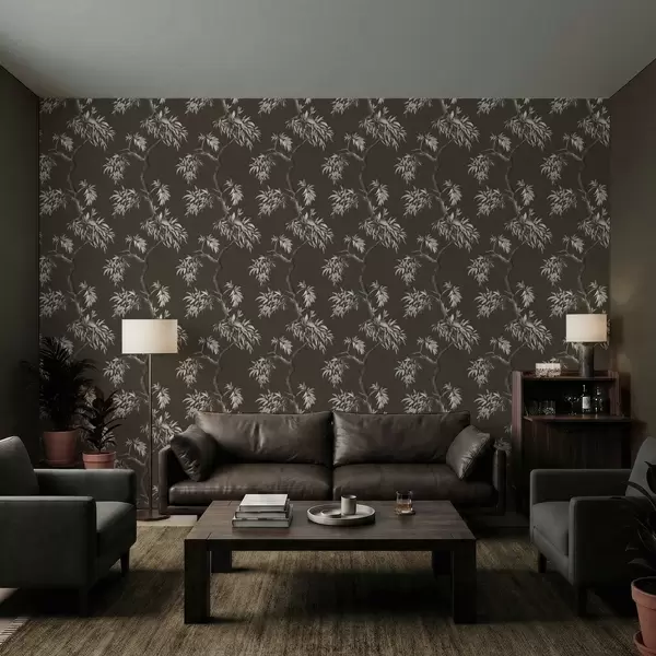 Carta da parati Ramo monocromatico con foglie su sfondo scuro a01117v2