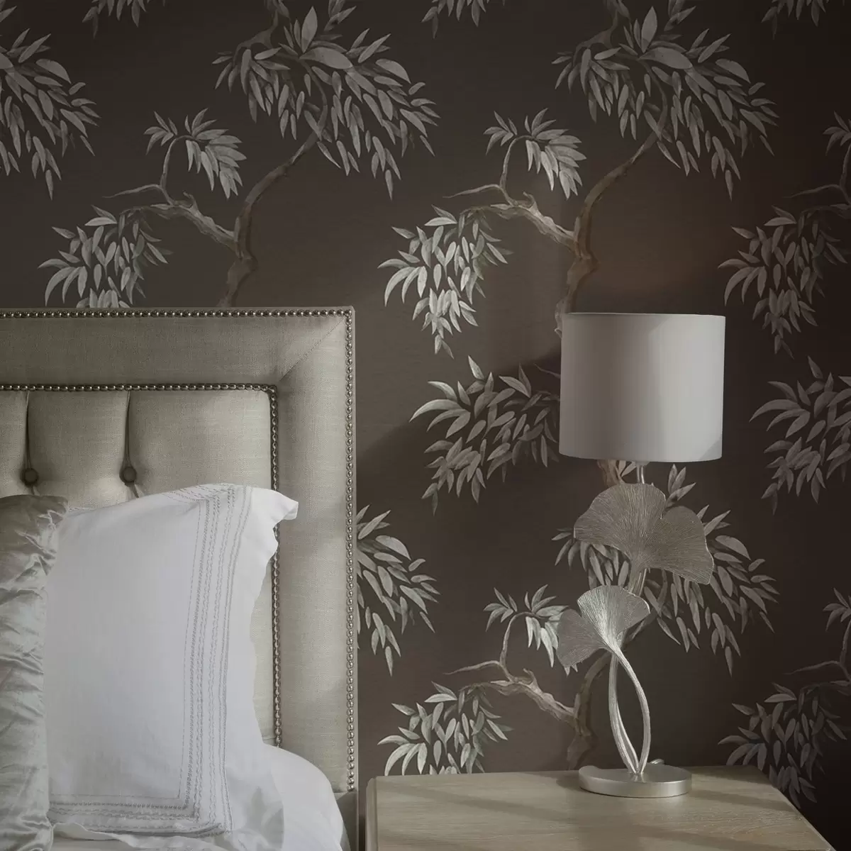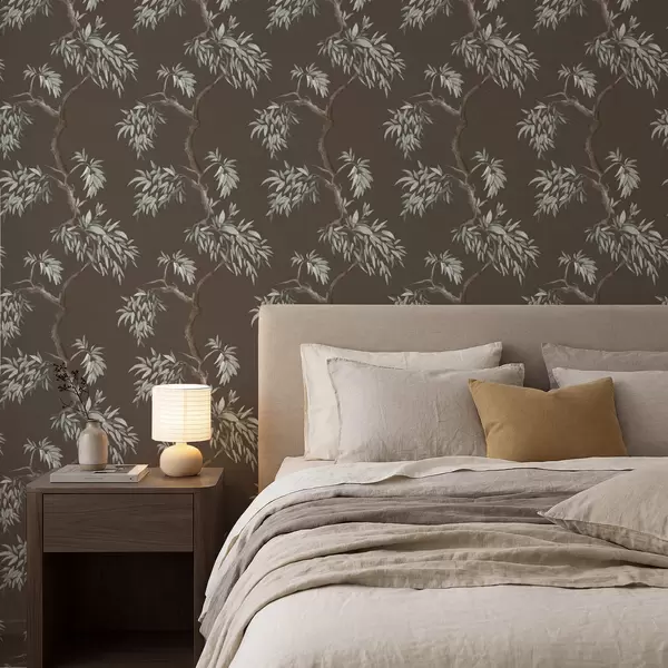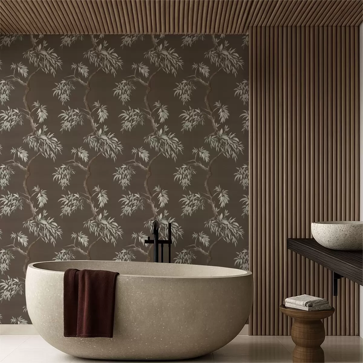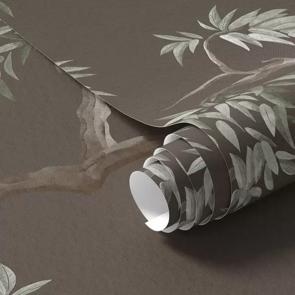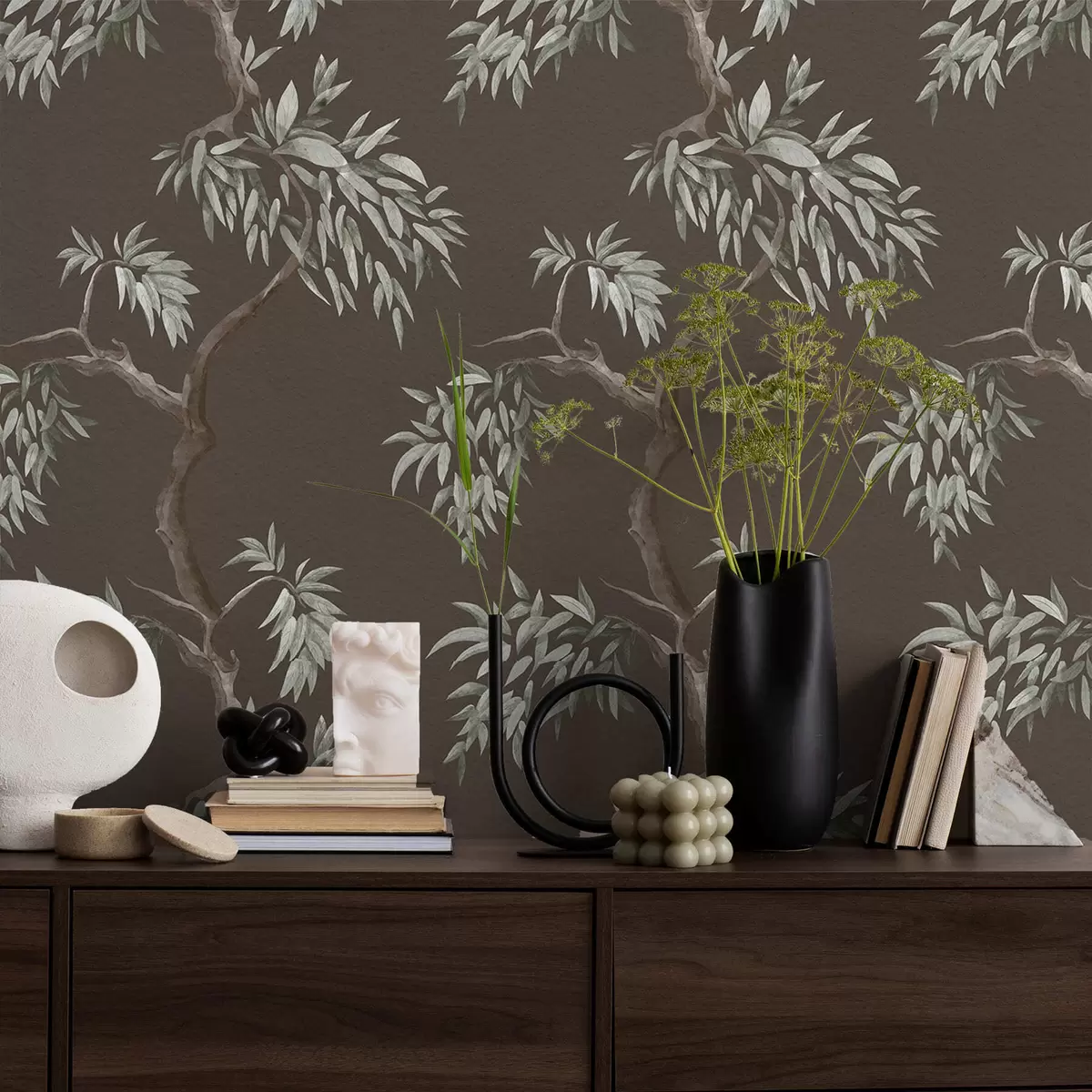 Carta da parati Ramo di albero con foglie su sfondo marrone Nr. a01117v3