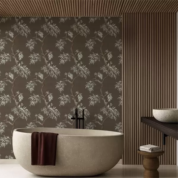 Carta da parati Ramo di albero con foglie su sfondo marrone a01117v3