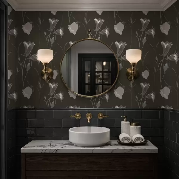Carta da parati Fiori grigi a campana su sfondo scuro Nr. a01119v1