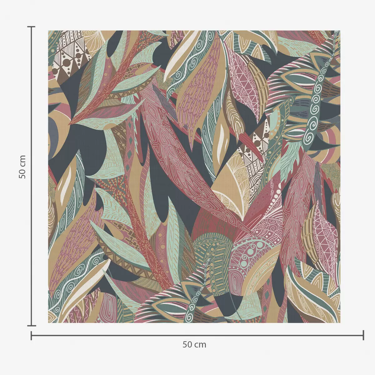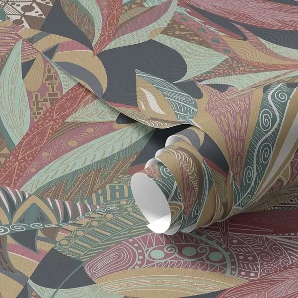 Carta da parati Foglie dai motivi colorati su sfondo scuro Nr. a01120