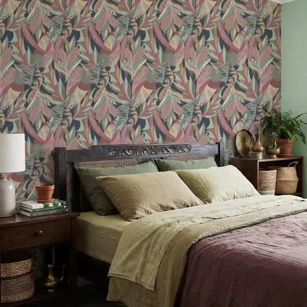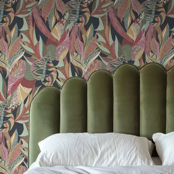 Carta da parati Foglie dai motivi colorati su sfondo scuro Nr. a01120