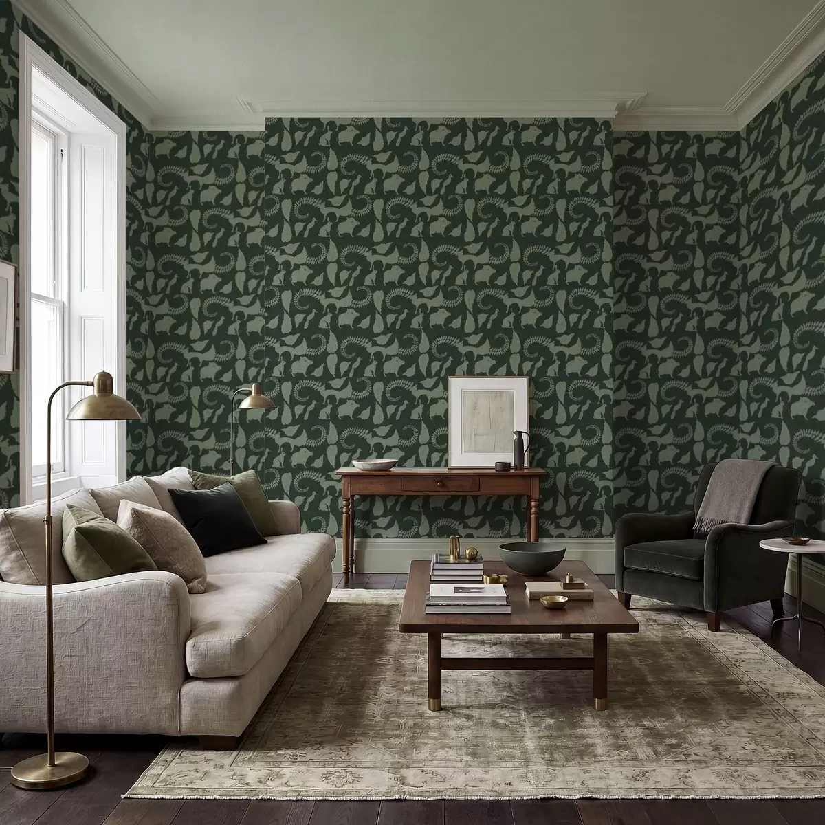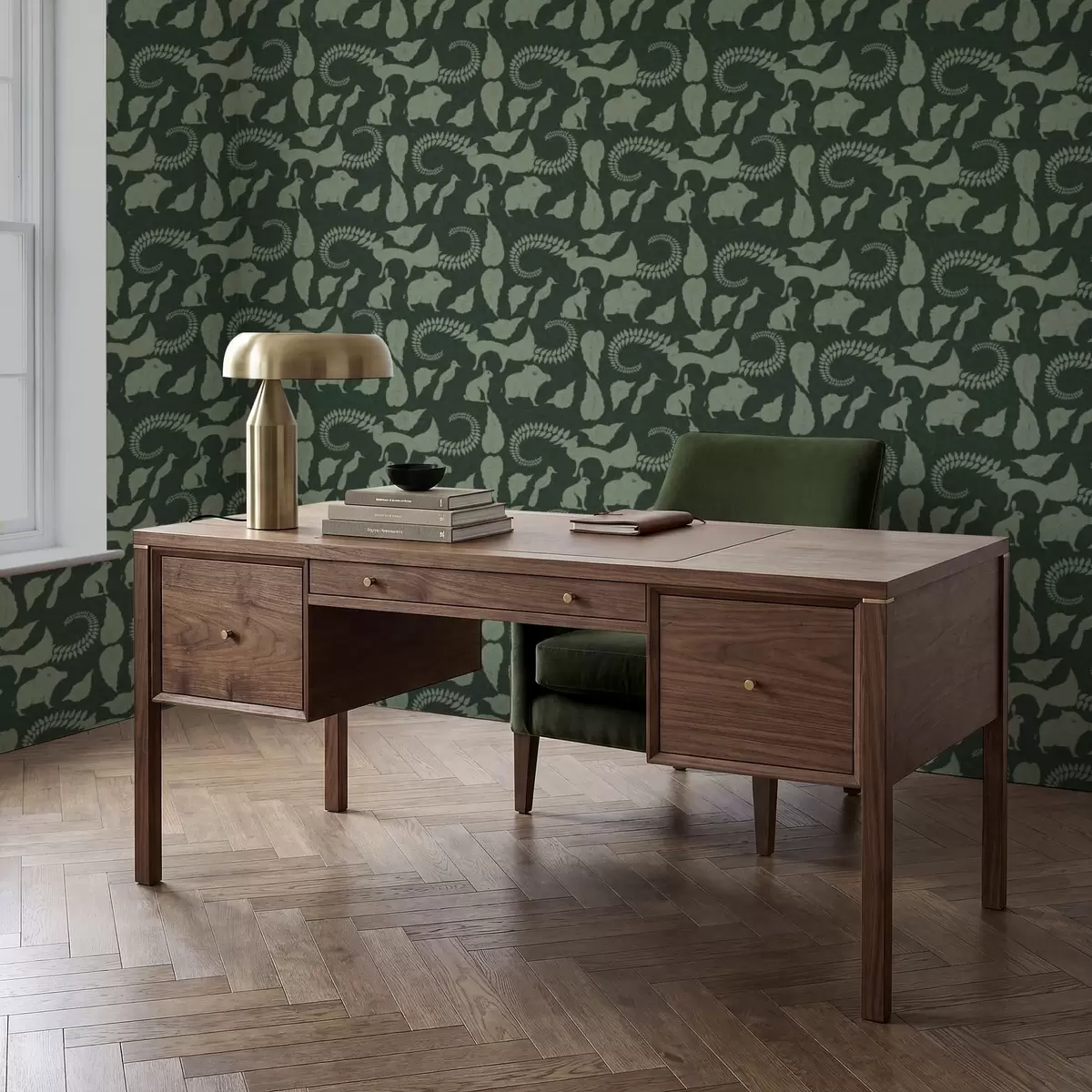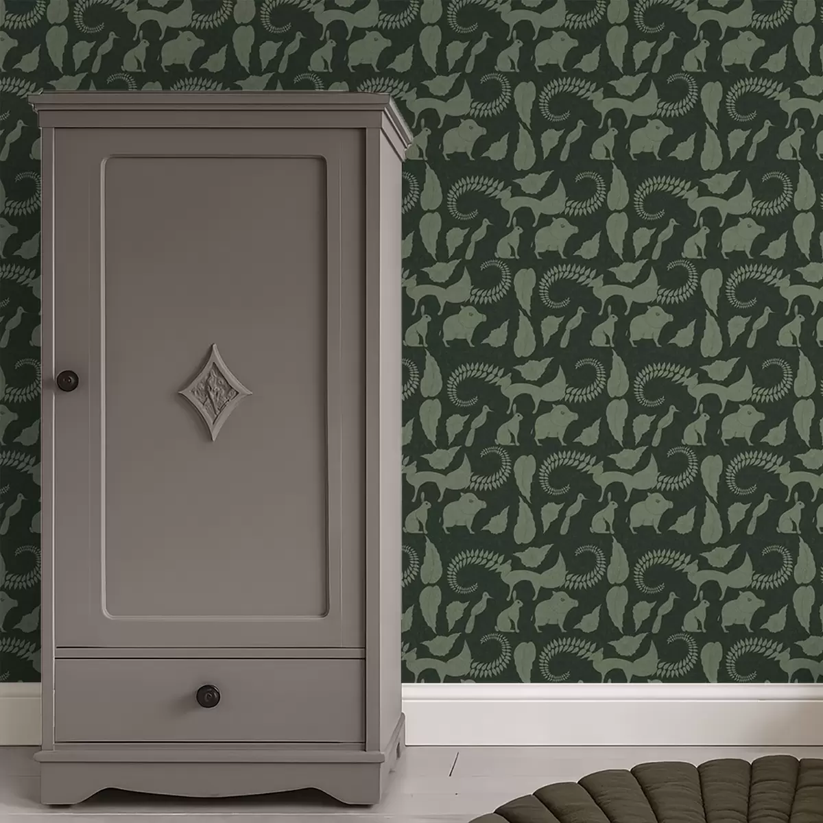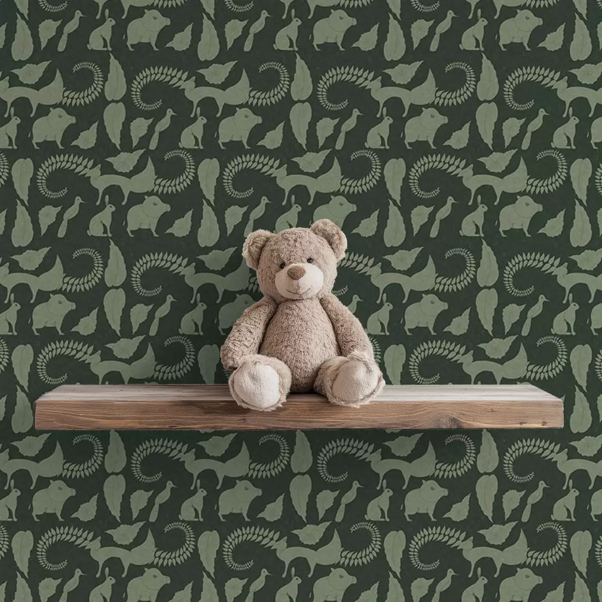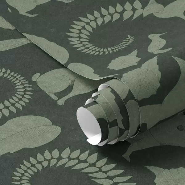 Carta da parati Motivo boschivo con animali su sfondo verde Nr. a01121v1