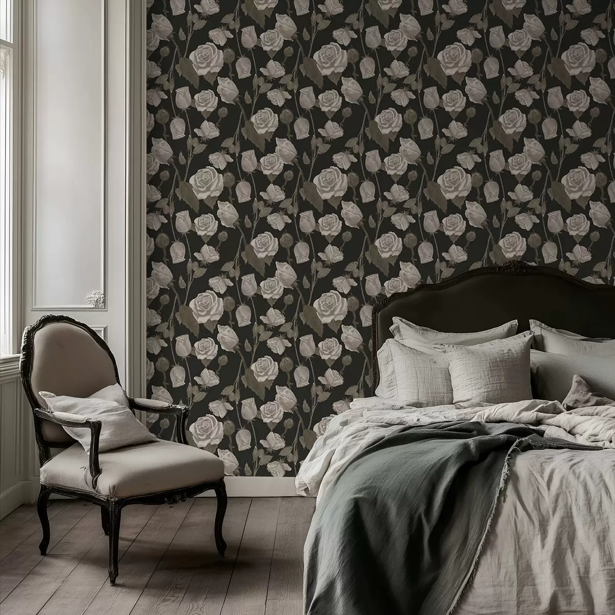 Carta da parati Motivo floreale con rose su sfondo scuro Nr. a01123