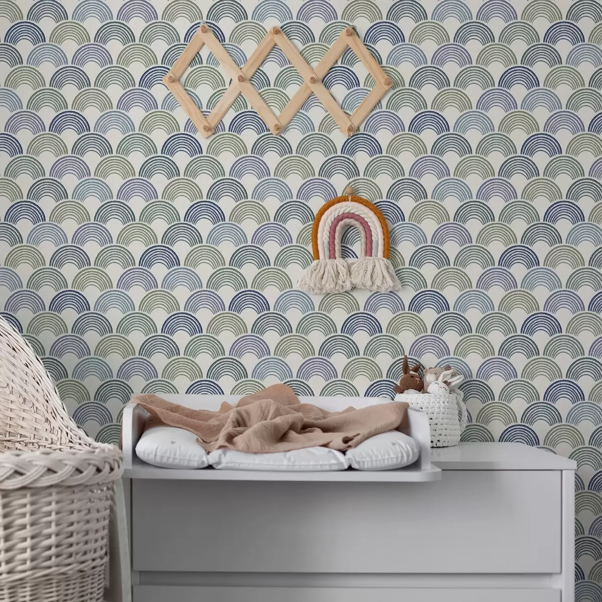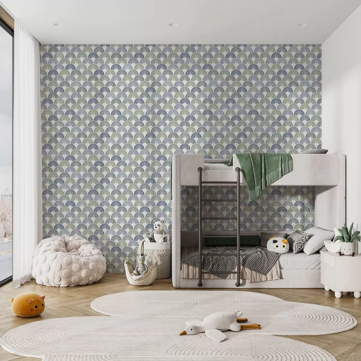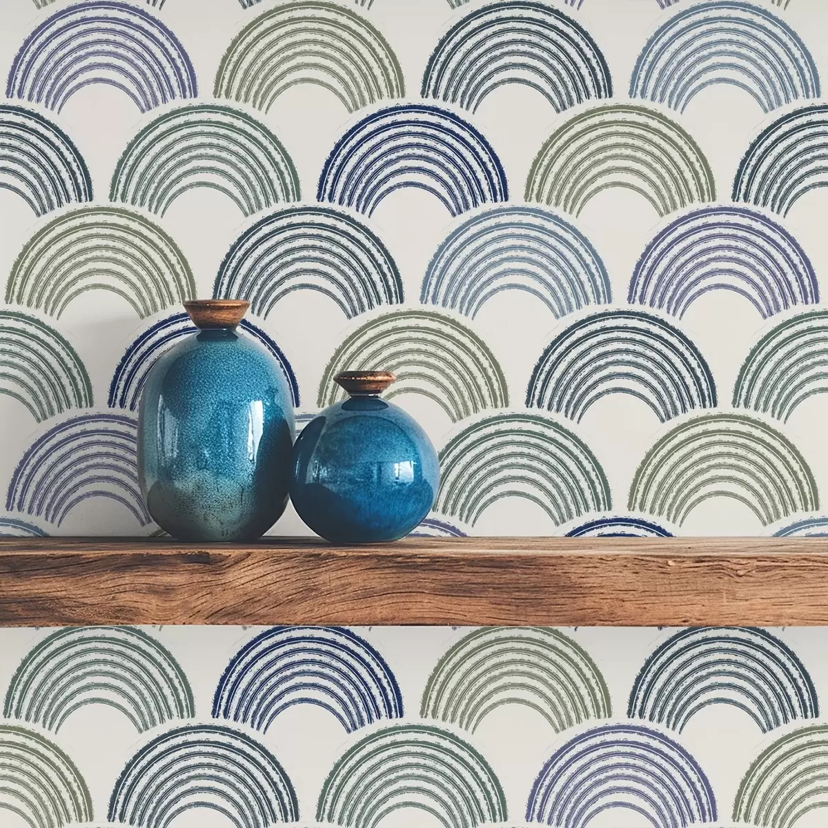 Carta da parati Archi blu e verdi in motivo ripetuto Nr. a01164v2